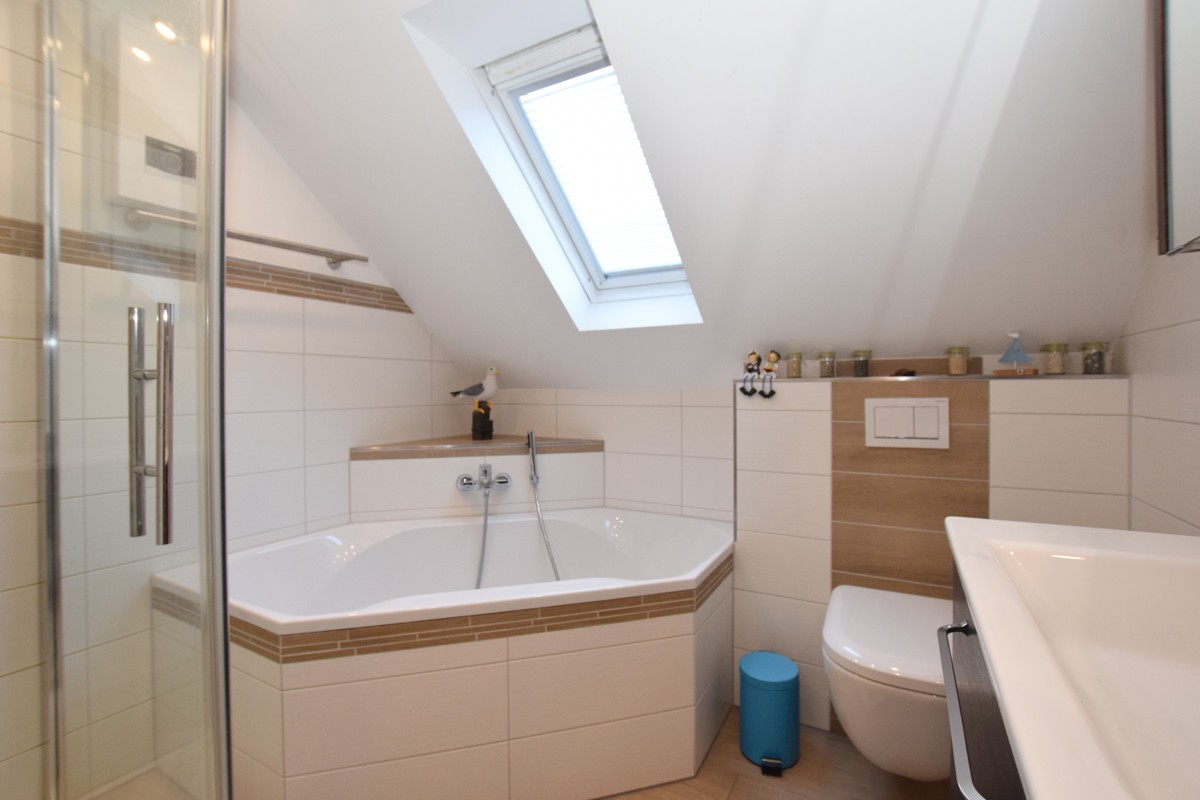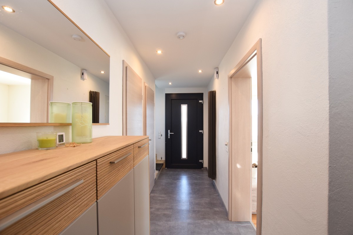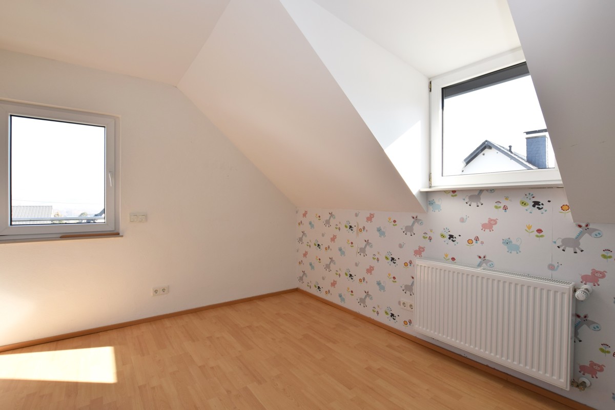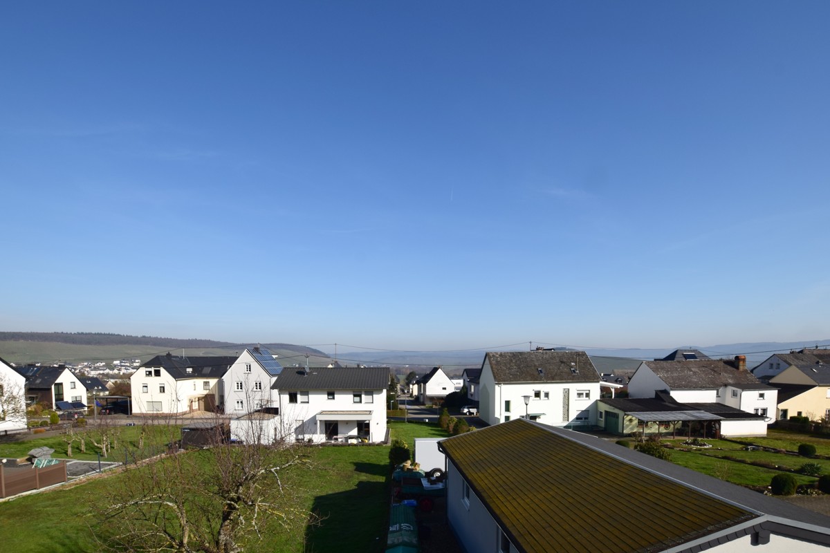Im Obergeschoss befinden sich 3 Schlafzimmer sowie ein Badezimmer mit Badewanne und Dusche. Den Balkon erreichen Sie über den Flur. Von hier genießen Sie einen schönen Blick über Monzel.