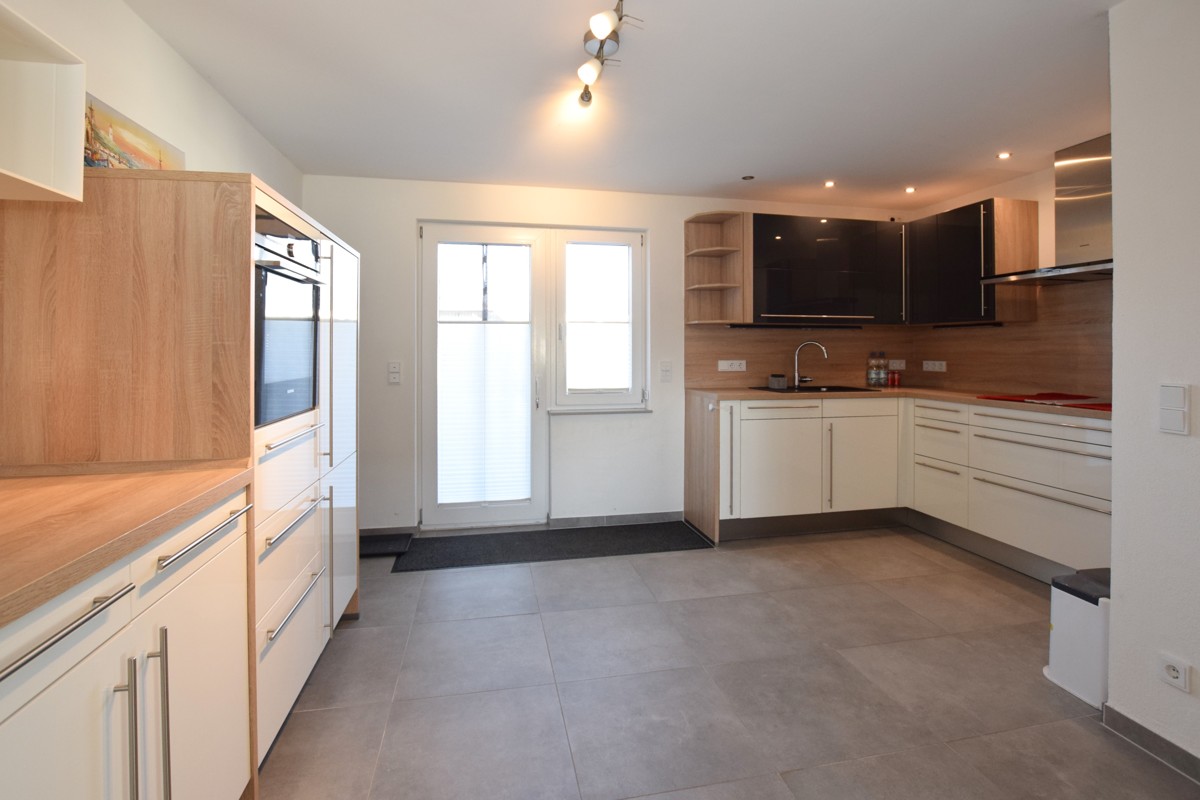 Im Erdgeschoss gelangen Sie über den Flur in das helle, großzügig geschnittene Wohn-/Esszimmer, welches in eine moderne, offen gestaltete Küche übergeht.