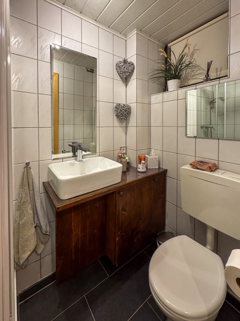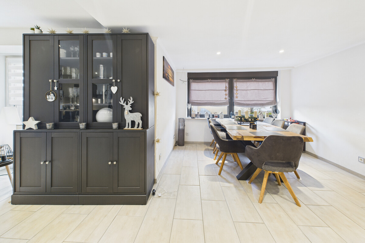 Das Obergeschoss bietet drei gut geschnittene Schlafzimmer sowie ein Ankleidezimmer, welches über einen Durchreicher mit der Wäschekammer verbunden ist – äußerst praktisch für den Alltag. Eines der Schlafzimmer verfügt zudem über einen eigenen Balkon. Ein großzügiges Badezimmer mit Dusche und Badewanne sorgt hier für zusätzlichen Komfort.