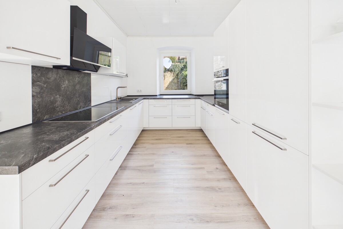 Das Untergeschoss verfügt aufgrund der Hanglage über einen direkten Zugang nach draußen. Hier befinden sich eine Garage, zwei Kellerräume, ein Gewölbekeller, der Heizungsraum sowie ein separater Abstellraum mit Außenzugang.