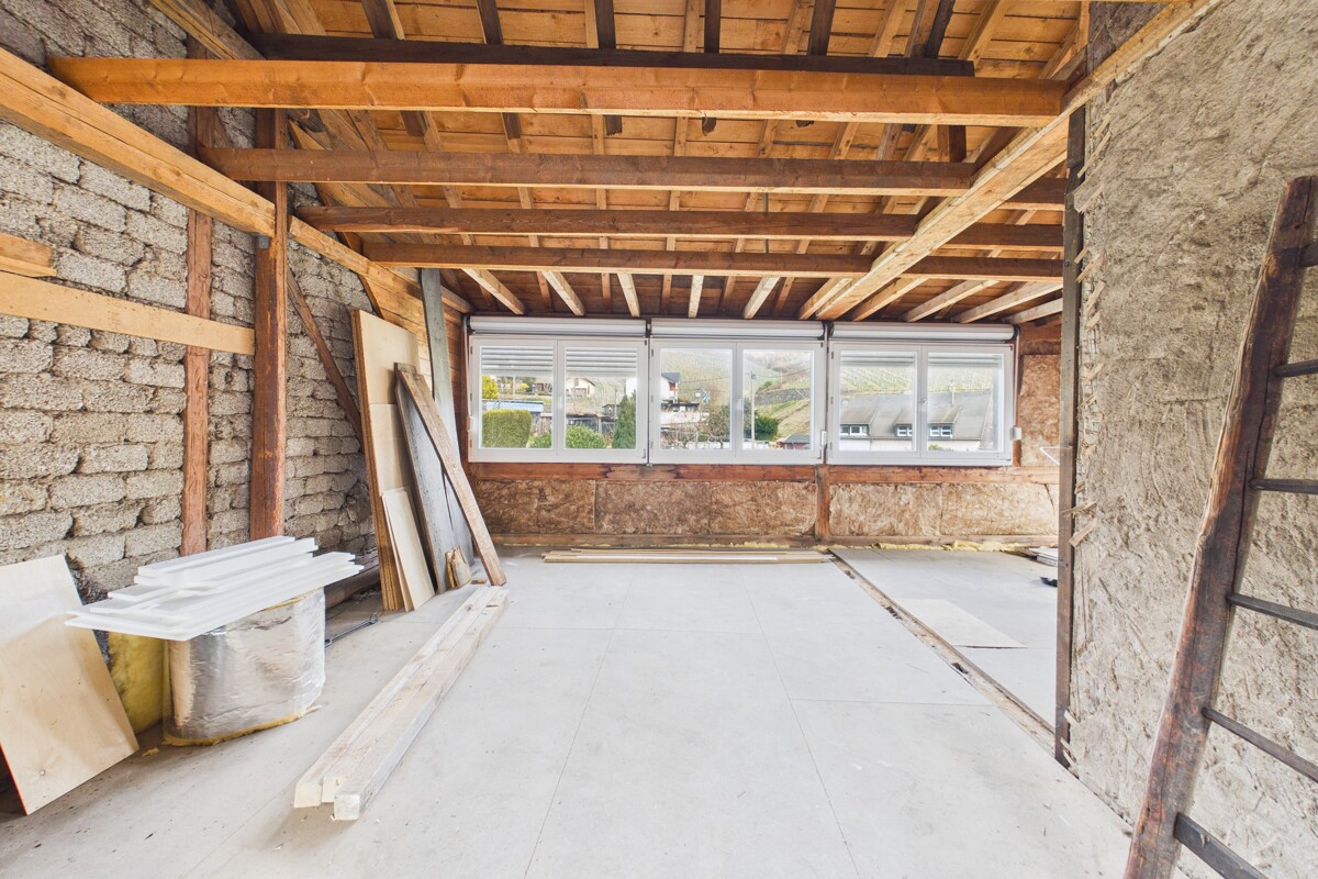 Im Dachgeschoss befinden sich ein Schlafzimmer mit Bad en suite welches mit einer Dusche ausgestattet ist sowie ein weiteres Zimmer, das sich aufgrund seiner Größe ideal als Büro oder Ankleidezimmer eignet. Zusätzlich steht hier eine großzügige Ausbaureserve zur Verfügung, durch die weiterer Wohnraum geschaffen werden kann.