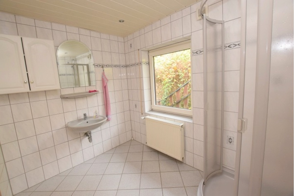 Über eine massive Rundtreppe gelangt man auf die nächste Etage in der zwei Räume aus dem älteren Baujahr stammen. Diese sind als Kinder und Elternschlafzimmer hervorragend geeignet. Über einen kleinen Flur gelangt man in das große, helle Wohnzimmer, ein weiteres Tageslichtbad mit Dusche. Aus der Küche gelangt man auf eine Terrasse mit Zugang zum Garten.