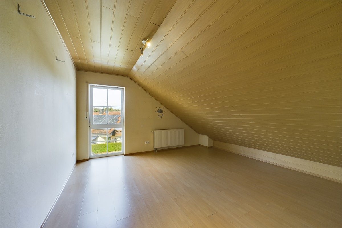 Das Dachgeschoss umfasst drei helle Schlafzimmer. Ein Badezimmer mit Dusche und Badewanne sorgt für zusätzlichen Komfort auf dieser Ebene.