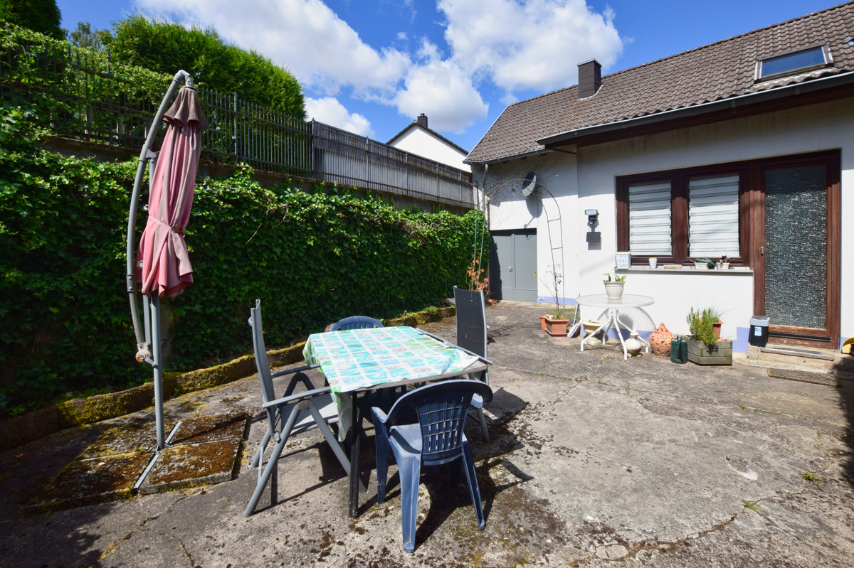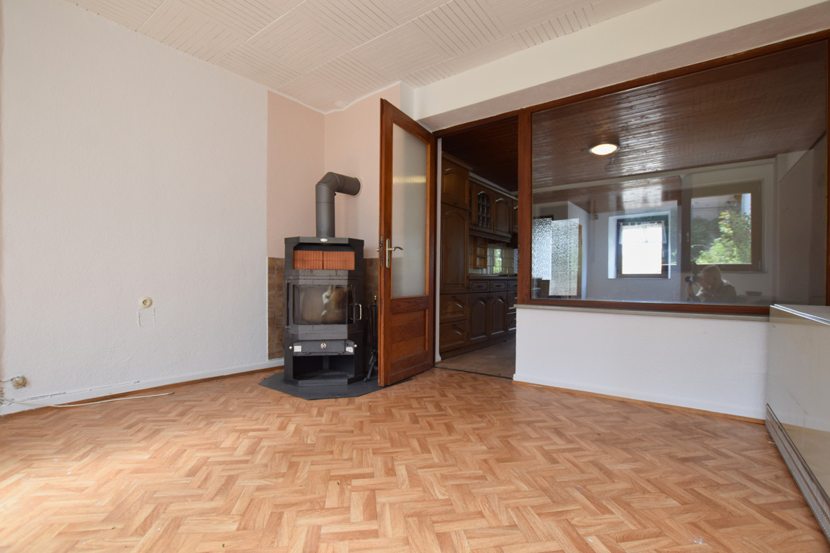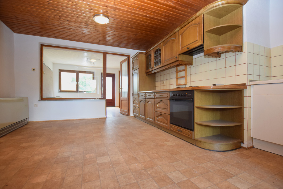 Im Erdgeschoss betreten Sie die Küche mit einem offenen Zugang zum Wohnzimmer. Dies schafft eine einladende Atmosphäre und ermöglicht eine nahtlose Verbindung zwischen den beiden Räumen. Von hier aus haben Sie einen direkten Zugang zur überdachten Terrasse sowie auf eine Grünfläche.
