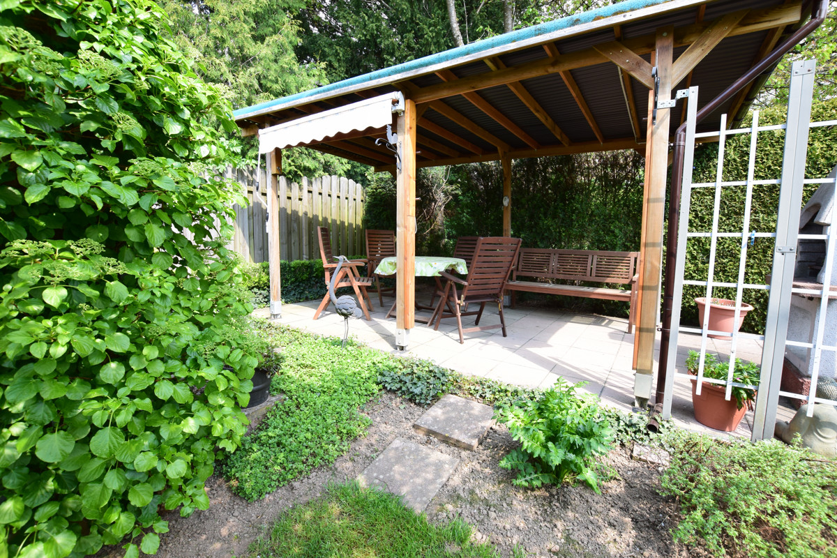 Zur Immobilie gehört eine Doppelgarage sowie ein wundervoller Garten mit einer gemütlichen Laube mit Grill, und einem kleinen Gartenhäuschen, in dem Sie Ihre Gartengeräte unterstellen können.
