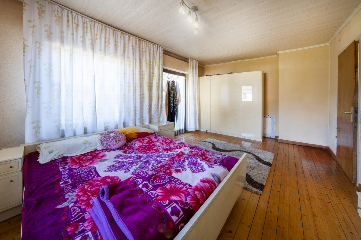 Im ersten Obergeschoss warten zwei großzügige Schlafzimmer darauf, Ihnen reichlich Platz für Ruhe und Entspannung zu bieten. Von hier aus öffnet sich der Zugang zur Terrasse, welche zum Verweilen und Genießen der frischen Luft einlädt.