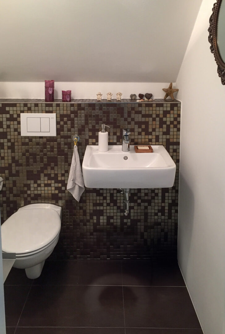 Auf zwei Etagen steht großzügiger Raum zur Verfügung, der durch ein helles, einladendes Ambiente überzeugt. Im Obergeschoss erwartet Sie ein offener Wohnbereich mit Zugang zu einem sonnigen Balkon, der sich ideal zum Entspannen eignet. Die angrenzende hochwertige Küche mit einer Edelstahlarbeitsplatte und einem modernen Gasherd lässt keine Wünsche offen. Ergänzt wird diese Ebene durch einen praktischen Hauswirtschaftsraum und ein Gäste-WC.