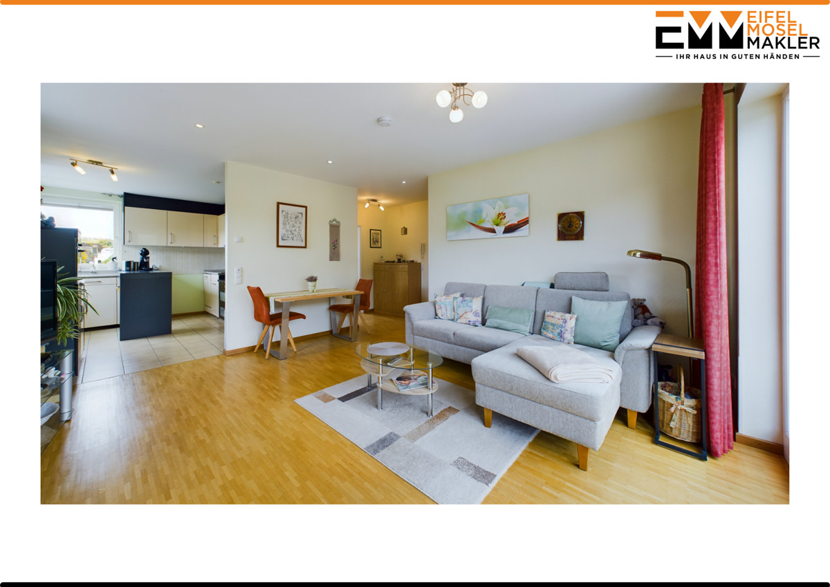 Diese gemütliche Eigentumswohnung befindet sich im 1. Obergeschoss eines gepflegten Mehrfamilienhauses und bietet eine angenehme Wohnqualität in unmittelbarer Nähe zur Mosel.