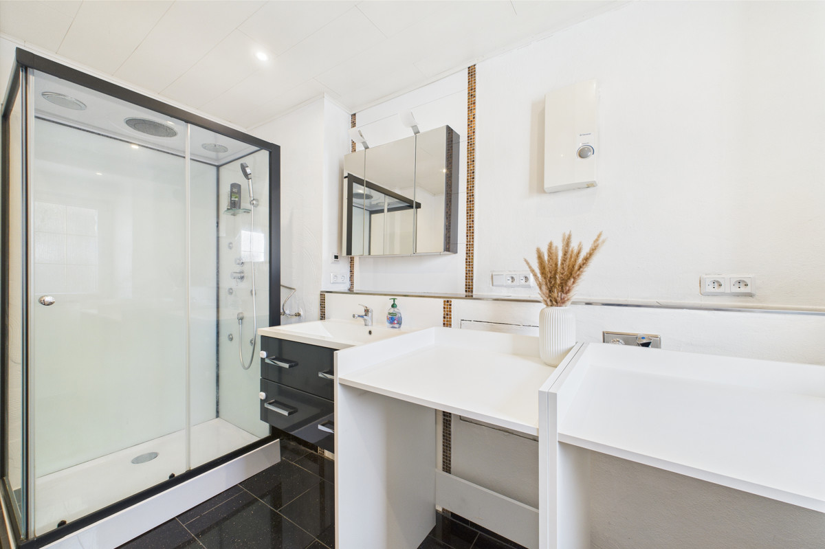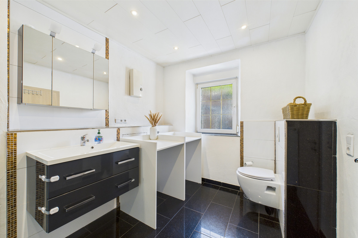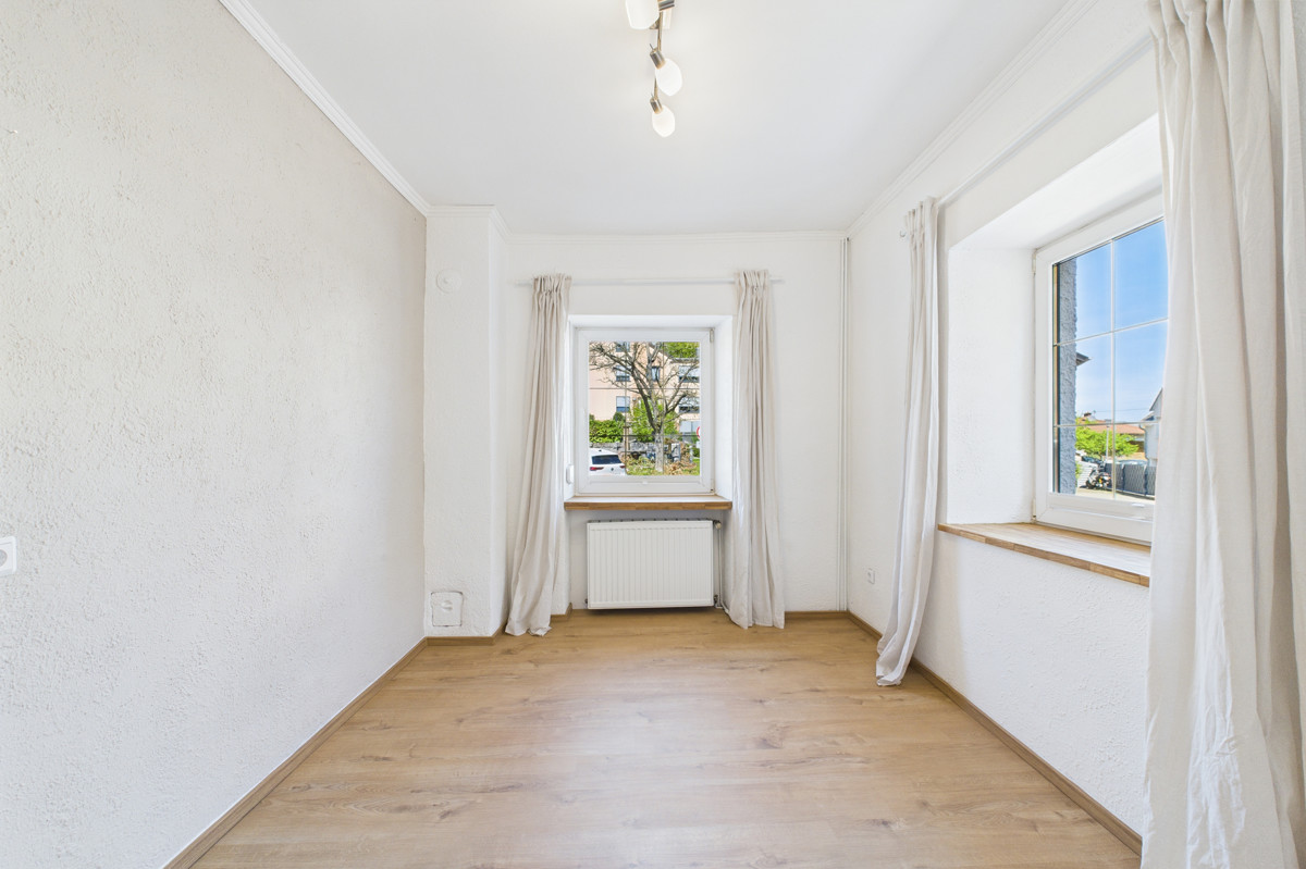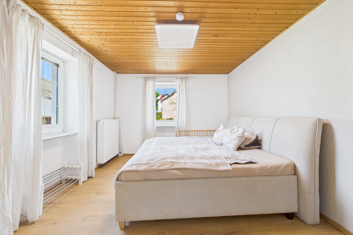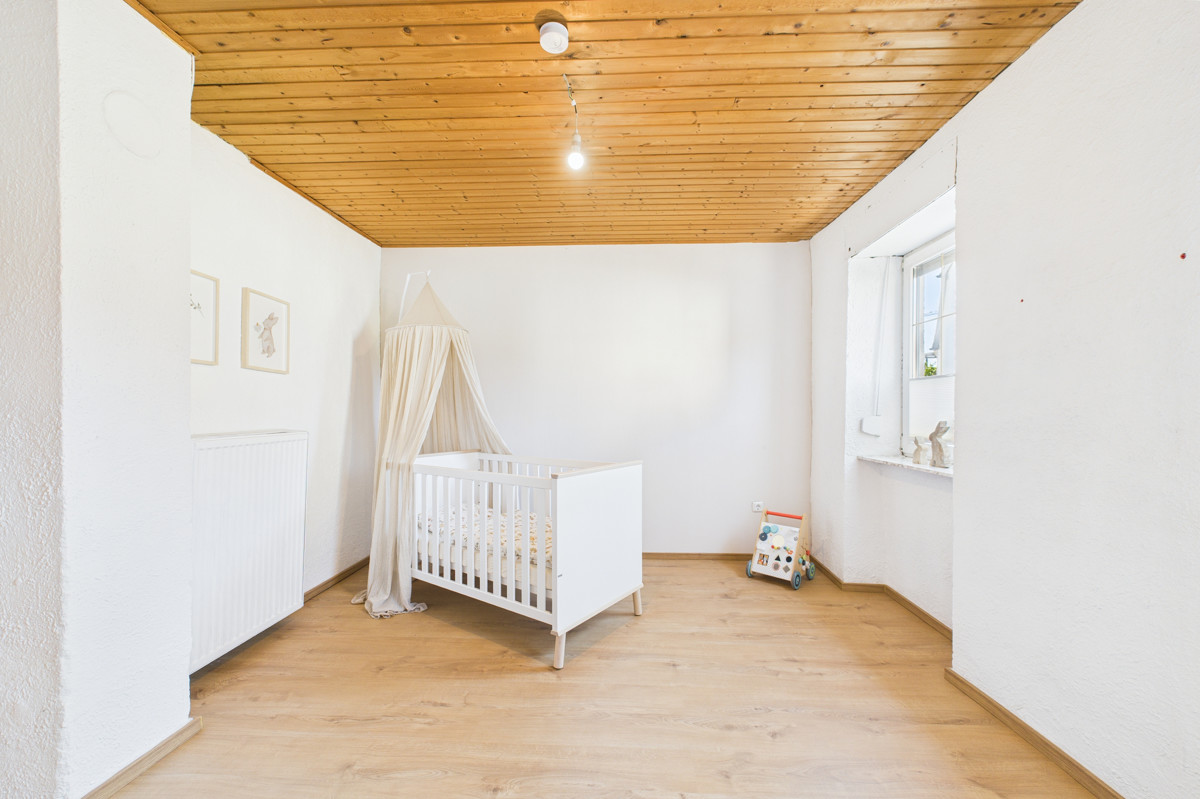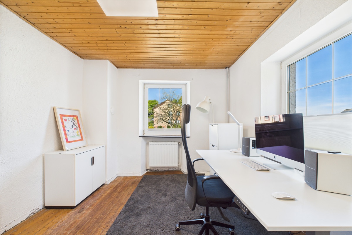 Im Obergeschoss stehen drei Schlafzimmer zur Verfügung, die sich ebenfalls flexibel als Kinder-, Gäste- oder Arbeitszimmer nutzen lassen. Ergänzt wird diese Etage durch ein zusätzliches Büro, welches ideal für Homeoffice oder kreative Hobbys geeignet ist. Der Dachboden schafft praktischen Stauraum und ist bequem erreichbar.