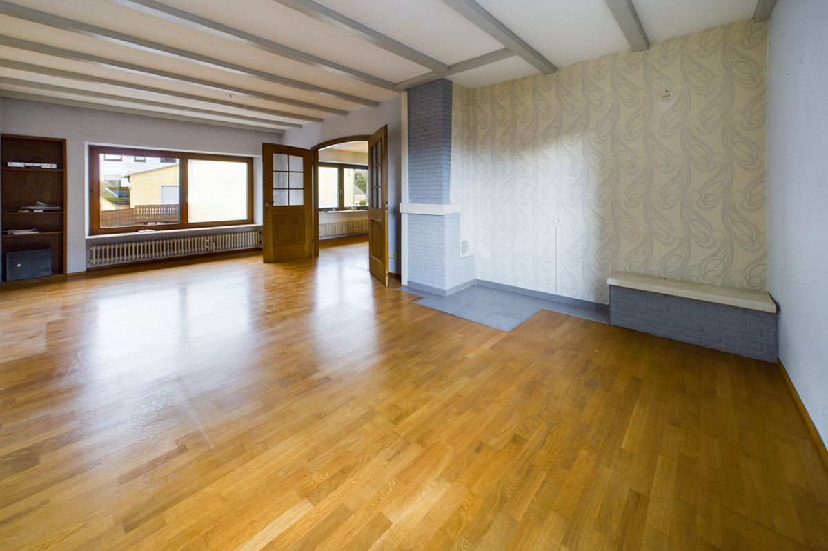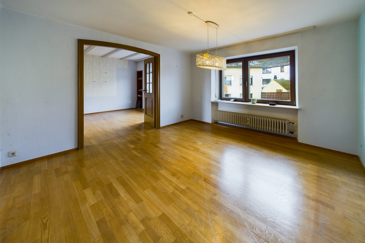 Das angrenzende Wohnzimmer ermöglicht viel Platz für gesellige Abende und ausreichend Erholung vom Alltag.