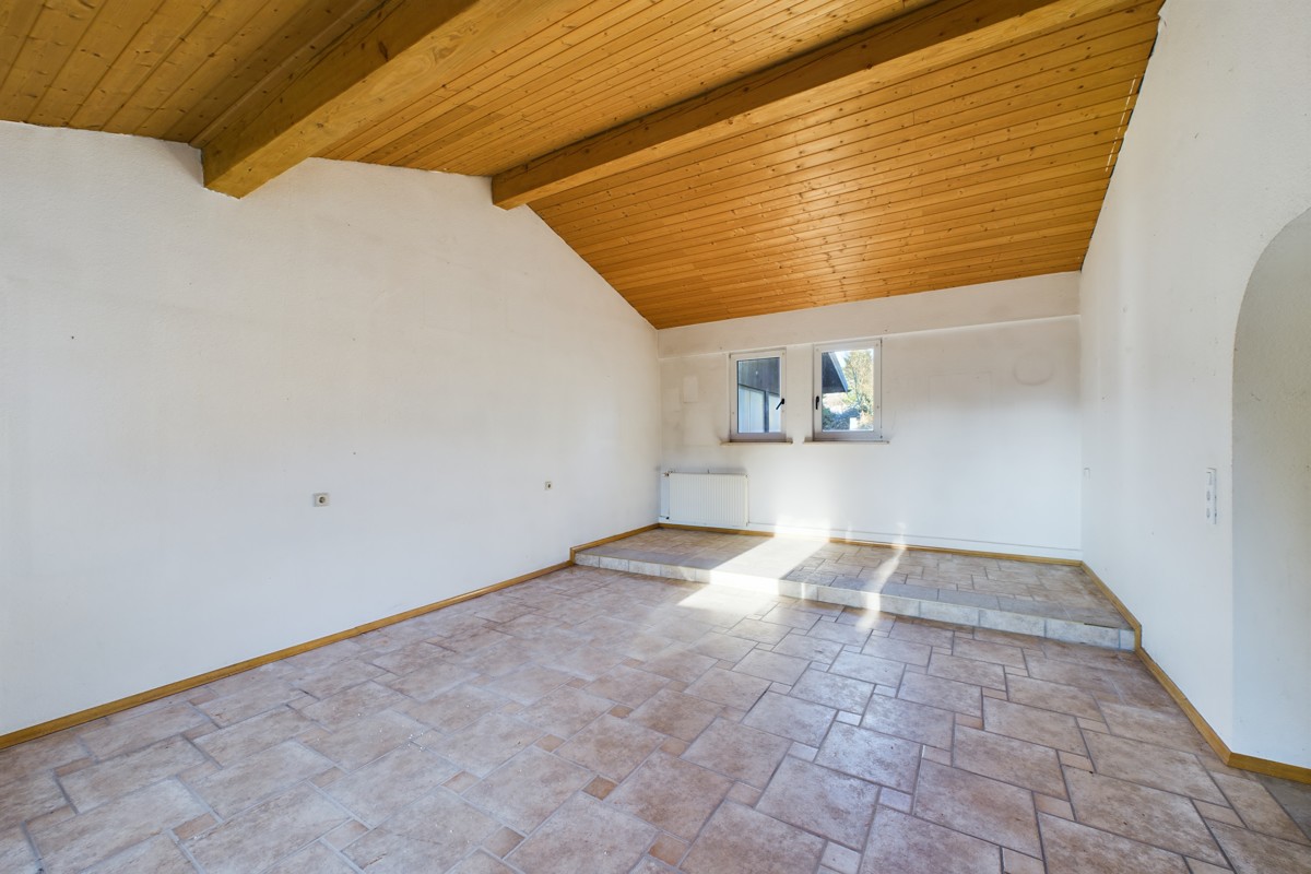 Das Obergeschoss überzeugt mit einer offenen Küche, die direkten Zugang zu einem Balkon ermöglicht, sowie einem Wohnbereich, einem Schlafzimmer, einem Büro und einem Badezimmer. Gemeinsam mit dem Dachgeschoss, das ein weiteres Schlafzimmer beherbergt, ließe sich hier eine zusätzliche Wohneinheit realisieren.