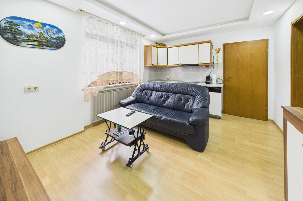 Im Kellergeschoss stehen weitere Nutzflächen zur Verfügung. Hier befinden sich eine Garage, der Heizungsraum sowie ein Abstellraum. Zudem gibt es ein weiteres Badezimmer mit Dusche. Ebenfalls befindet sich hier eine kleine Sauna, die zum Entspannen einlädt.