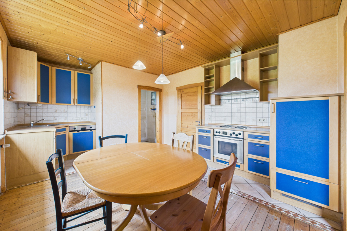 Im Erdgeschoss empfängt Sie ein offener Küchen- und Essbereich mit praktischem Abstellraum sowie ein angrenzendes Wohnzimmer, das zum Verweilen einlädt. Ein Gäste-WC ist ebenfalls vorhanden. Besonders praktisch ist die von außen zugängliche Werkstatt – ideal für Hobbyhandwerker oder als zusätzlicher Stauraum. Möglich wäre auch ein Durchbruch vom Wohnzimmer in die Werkstatt, um die Wohnfläche im Erdgeschoss bei Bedarf zu erweitern und den Grundriss offener zu gestalten.