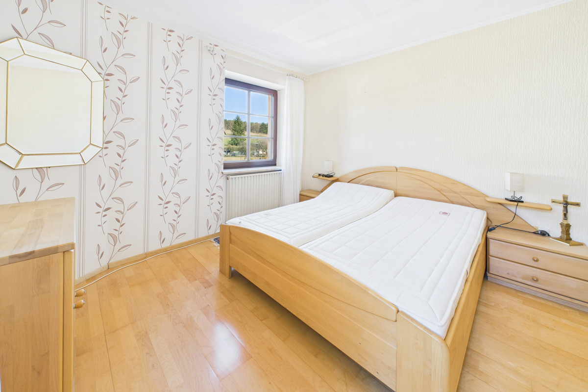 Das Obergeschoss verfügt über zwei Schlafzimmer, ein Badezimmer mit Badewanne und Dusche und ein weiteres kleineres Zimmer mit Balkon, welches sich hervorragend als Büro eignet.