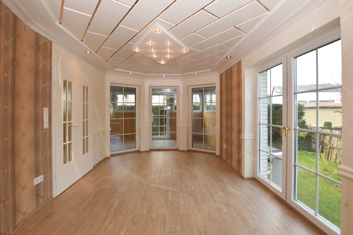 Der Wintergarten wurde 2020 im Erdgeschoss angebaut und verfügt über Kunststofffenster mit dreifach verglasten Scheiben. Sie erreichen den Wintergarten über die offene und helle Küche.