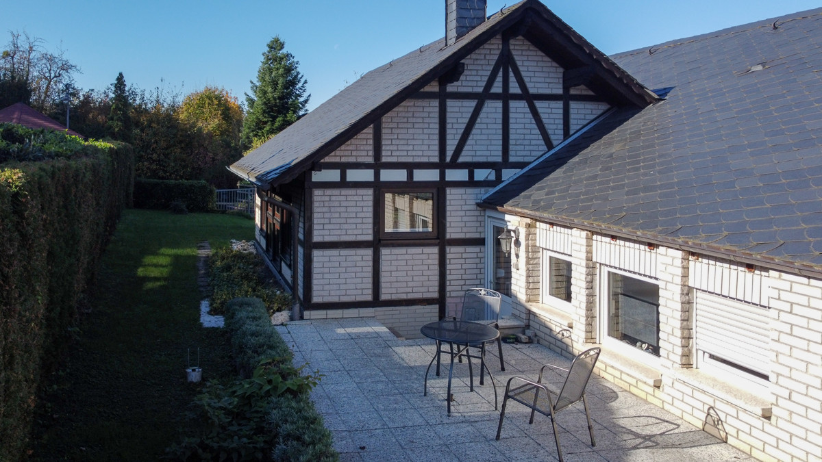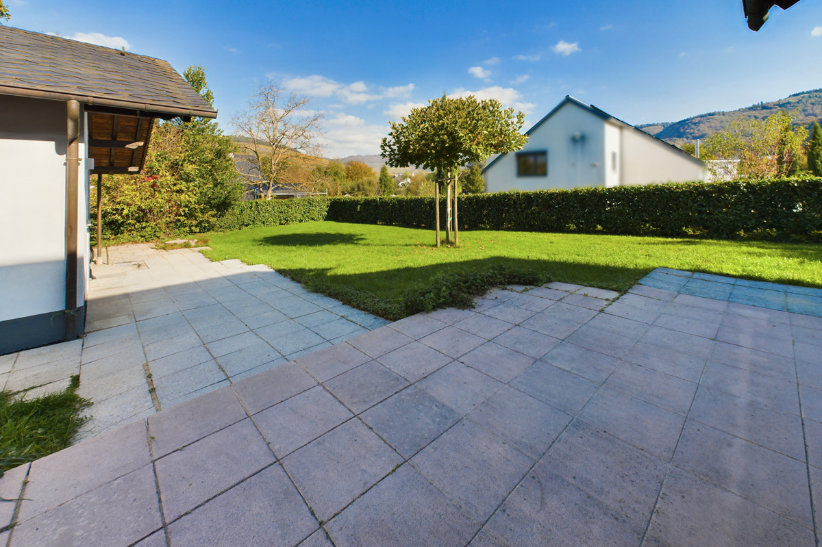 Im Außenbereich lädt ein gepflegter Garten zum Verweilen ein. Zwei Terrassen schaffen Raum für entspannte Stunden im Freien. Die Garage ergänzt den Außenbereich und stellt eine geschützte Abstellfläche für ein Fahrzeug bereit.