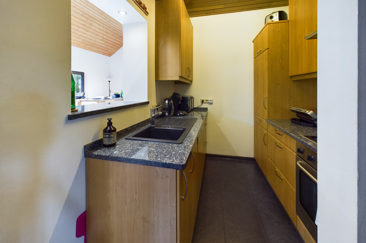 Das Erdgeschoss ist der Hauptwohnbereich des Hauses. Hier befindet sich ein großzügiges Wohnzimmer, das durch seine Helligkeit und den Platz zum Entspannen überzeugt. Die funktional geschnittene Küche lässt Raum zum Kochen. Zwei Schlafzimmer und zwei Badezimmer sorgen für Komfort und Privatsphäre. Der Allzweckraum sowie ein Abstellraum schaffen zusätzlichen Stauraum, während eine Werkstatt im Erdgeschoss weitere Nutzungsmöglichkeiten ermöglicht.