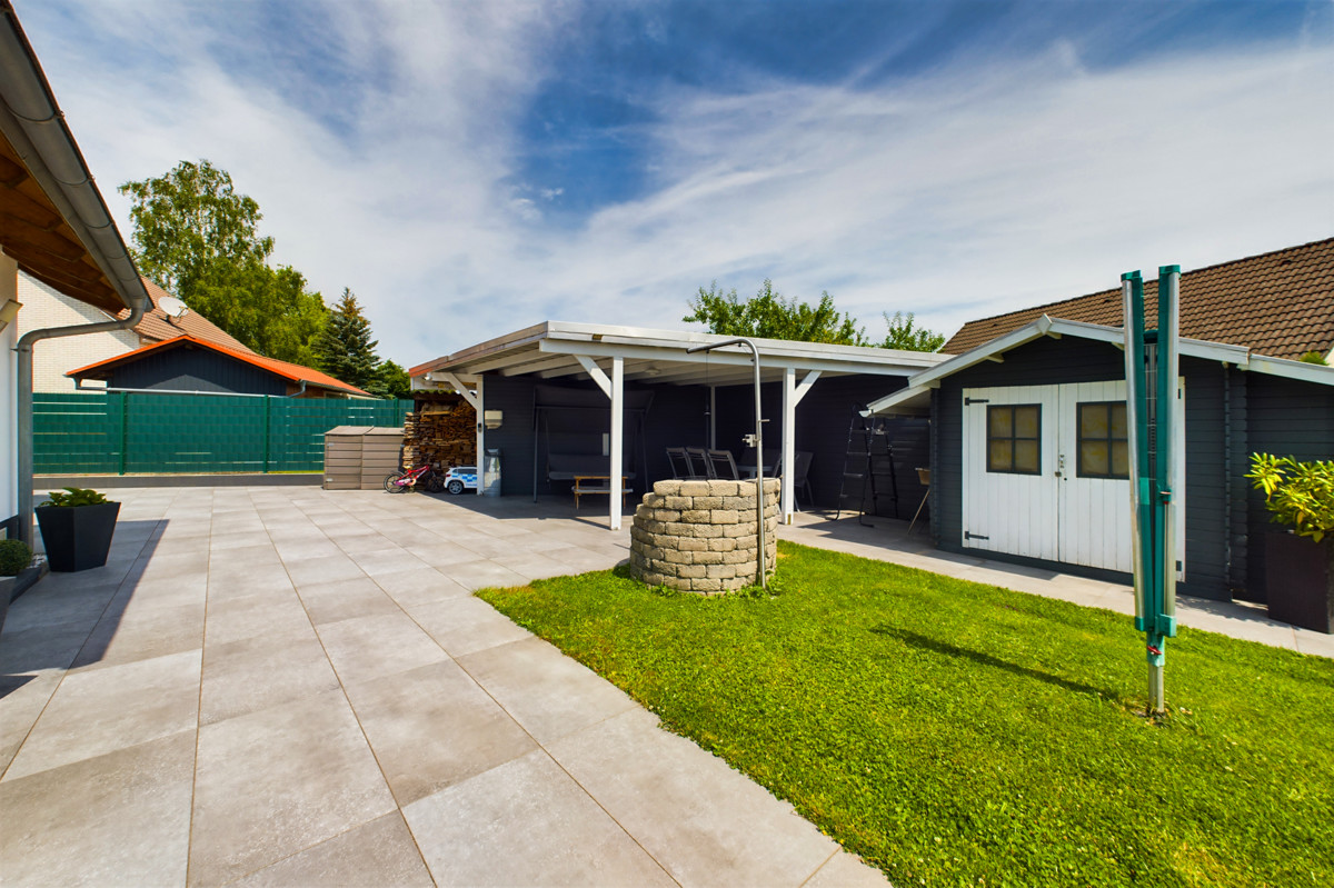 Der Außenbereich dieses Hauses ist ein wahres Paradies. Der große, gepflegte Garten lädt zu zahlreichen Freizeitaktivitäten und entspannten Stunden im Freien ein. Ein charmantes Gartenhäuschen bietet zusätzlichen Stauraum. Für zusätzlichen Schutz und Parkmöglichkeiten sorgt ein Carport, welches die Doppelgarage perfekt ergänzt.