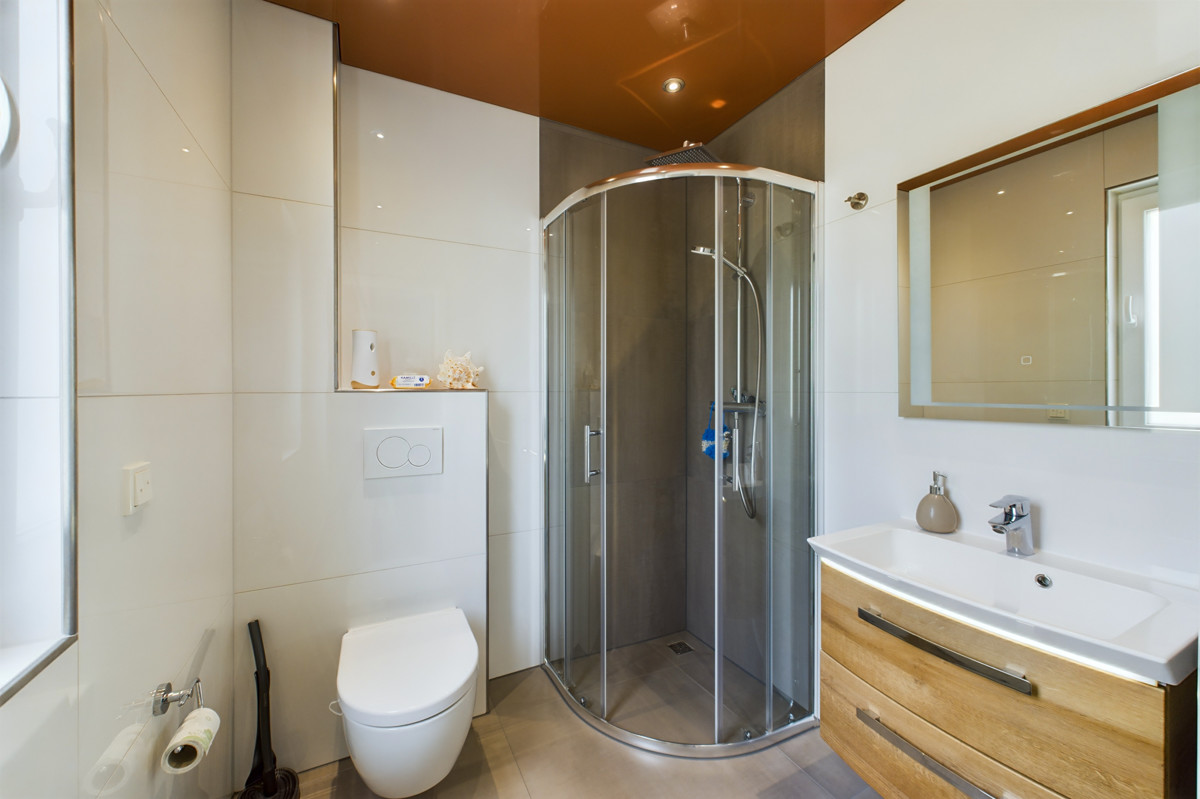 Schon beim Betreten des Hauses beeindruckt der offene Wohn- und Essbereich im Erdgeschoss mit seiner großzügigen Weitläufigkeit und den großen Fenstern, die für eine helle und freundliche Atmosphäre sorgen. Die moderne Küche grenzt direkt an den Essbereich an und lädt zum gemeinsamen Kochen und Verweilen ein. Ein praktisches Badezimmer mit Dusche ist ebenfalls im Erdgeschoss vorhanden und besonders für Gäste sehr nützlich.