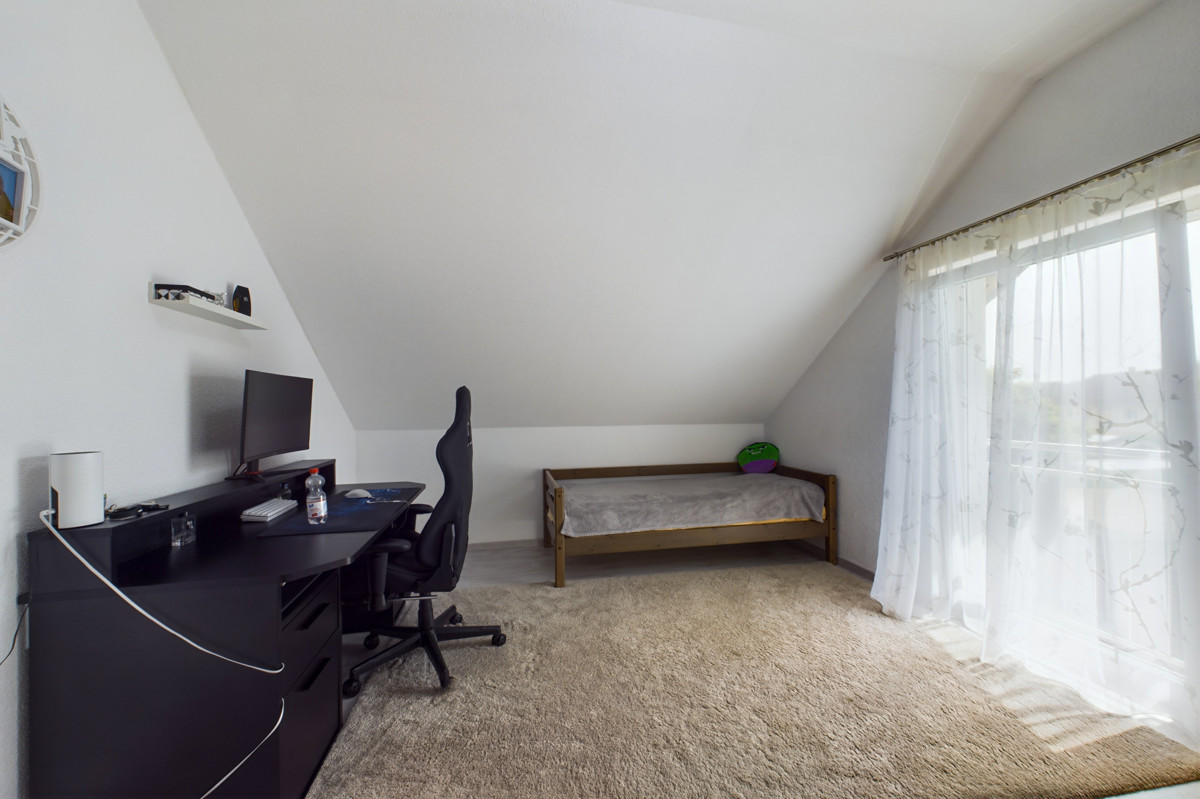 Die Wäschekammer erleichtert den Alltag erheblich und bietet genügend Platz für Ihre Hausarbeit. Die angrenzende Doppelgarage schützt Ihre Fahrzeuge und sorgt für bequemen Zugang. Ein vielseitig nutzbarer Allzweckraum und ein Büro runden das Raumangebot im Erdgeschoss perfekt ab.
