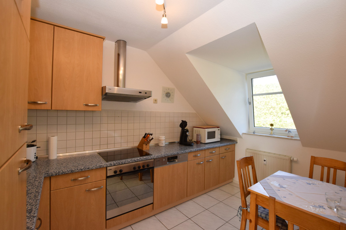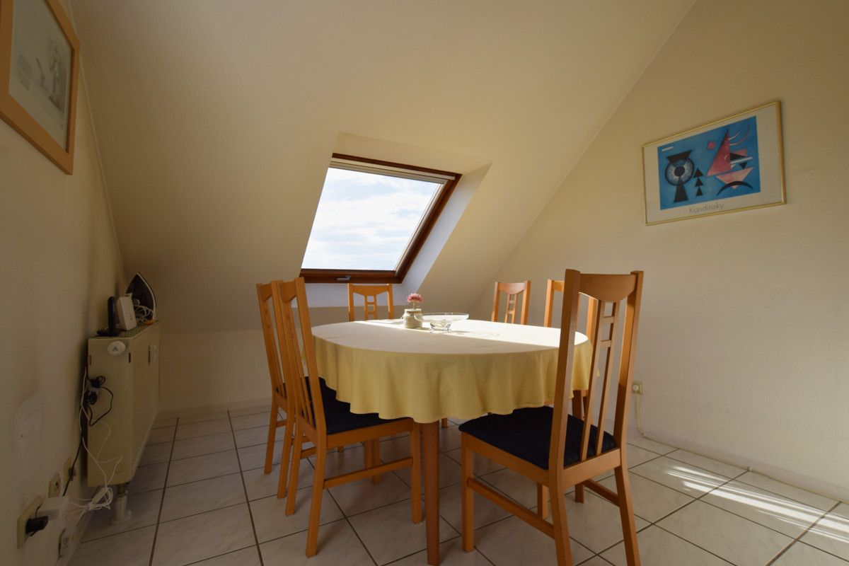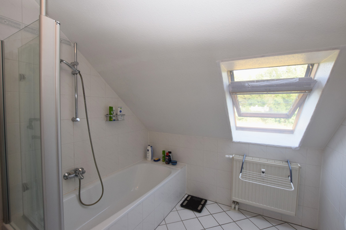 Die Wohnung unterteilt sich in ein Gäste-WC, 2 Schlafzimmer, ein Badezimmer mit Badewanne, ein Abstellraum, ein offene Esszimmer und die helle freundliche Küche.