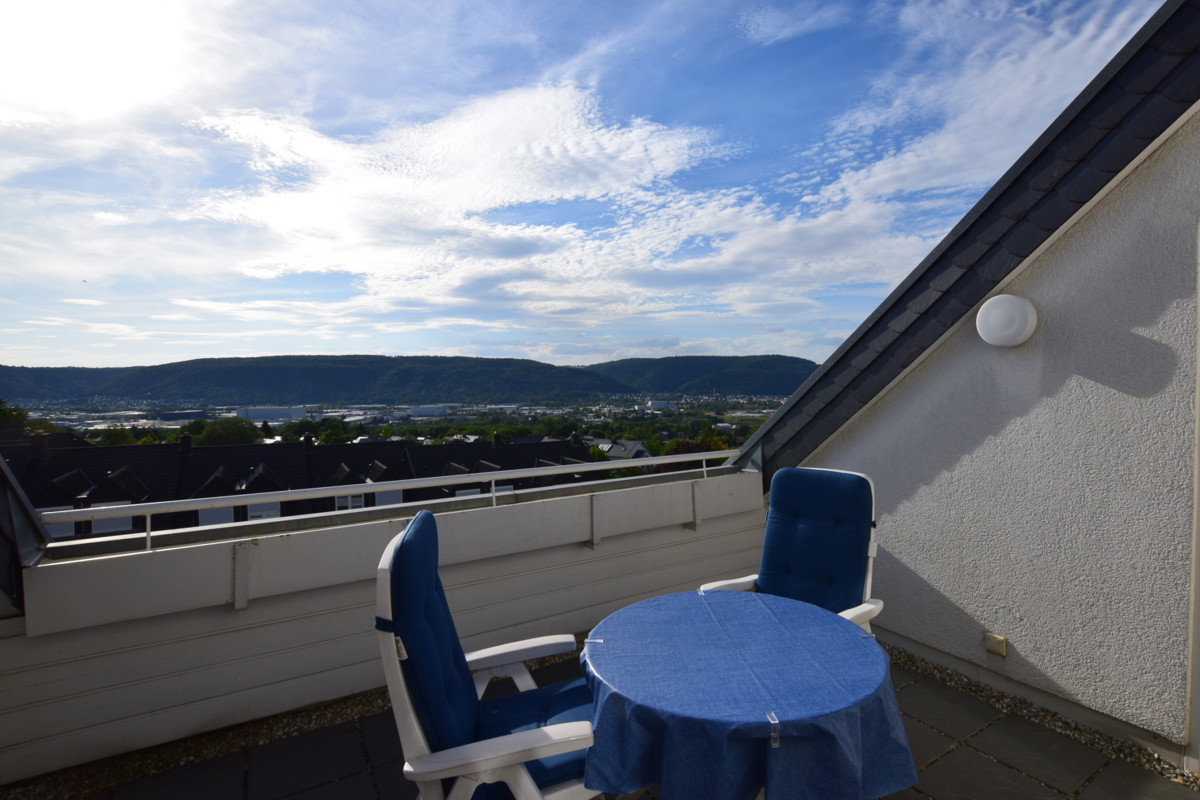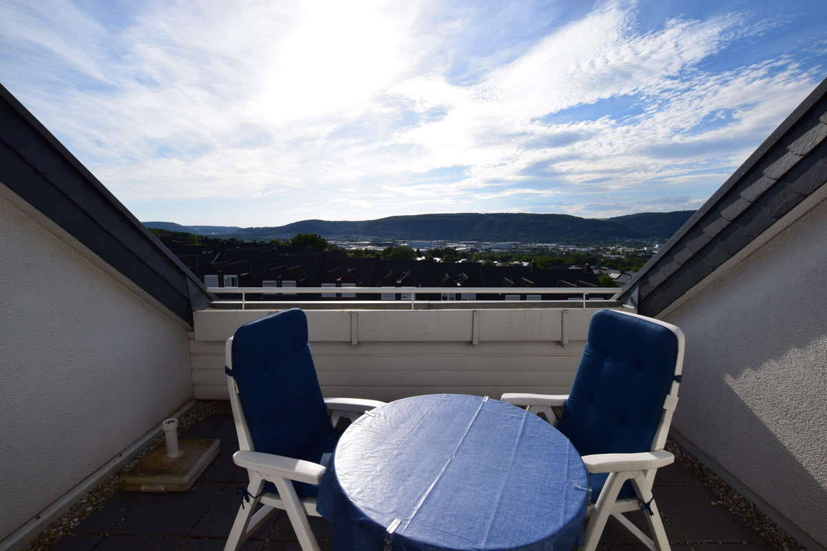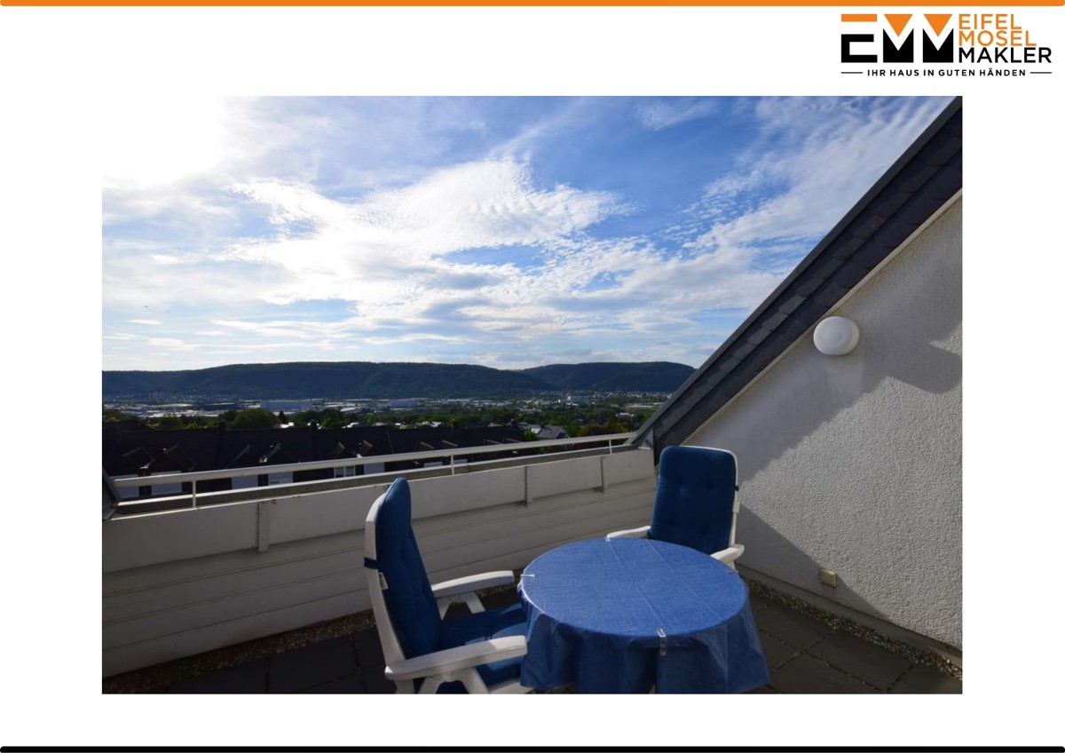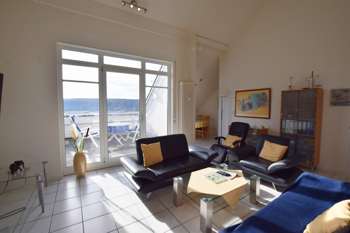 Das absolute Highlight in diese Wohnung ist das Wohnzimmer mit Zugang zur Loggia. Der Wohnraum wirkt durch die hervorragende Deckenhöhe von über 4 Metern besonders hell. Der Zugang zur Loggia lässt einen sprachlos werden. Genießen Sie den fantastischen Ausblick über Trier. Hier können Sie tagsüber die Sonne genießen und in den Abendstunden mit einem Glas Wein, einen langen Tag ausklingen lassen. Hier fühlt sich Zuhause wie Urlaub an.