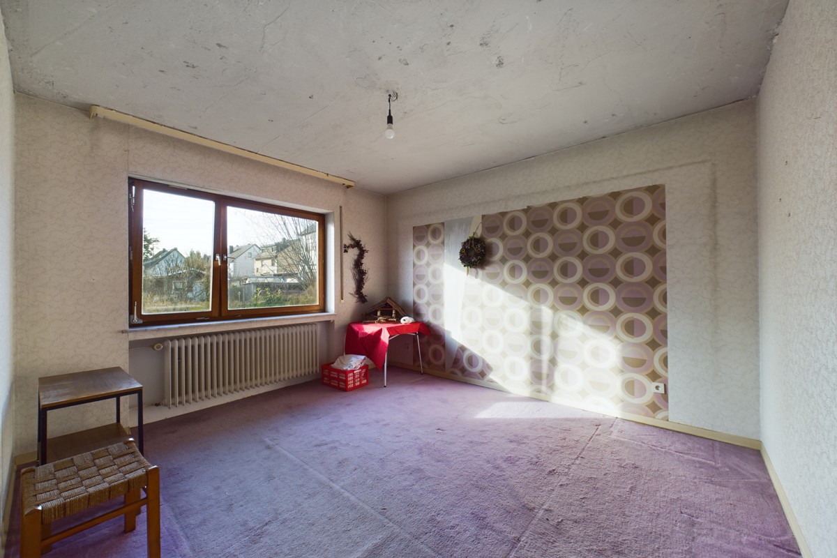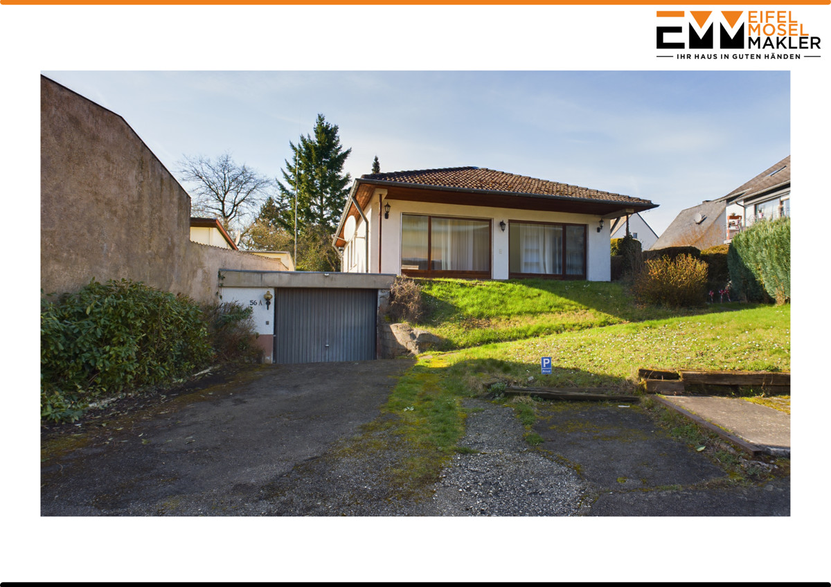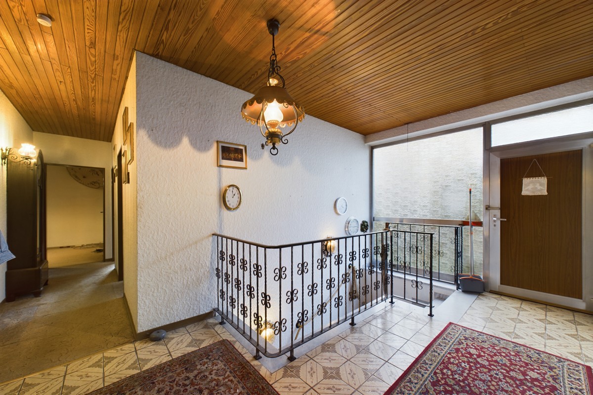 Der Bungalow erstreckt sich über drei Ebenen, beginnend mit dem Erdgeschoss, das eine Küche, ein Esszimmer, einen großzügigen Wohnbereich, ein Büro, sowie zwei Schlafzimmer und ein Badezimmer beherbergt. Im Untergeschoss finden sich ein Wohnzimmer, ein Esszimmer, ein Schlafzimmer, ein Badezimmer, ein Heizungsraum, ein Allzweckraum und eine Garage. Das Dachgeschoss bietet mit einem Speicher zusätzlichen Stauraum. Eine Aufstockung des Bungalows schafft weitere Möglichkeiten Wohnfläche herzustellen.
