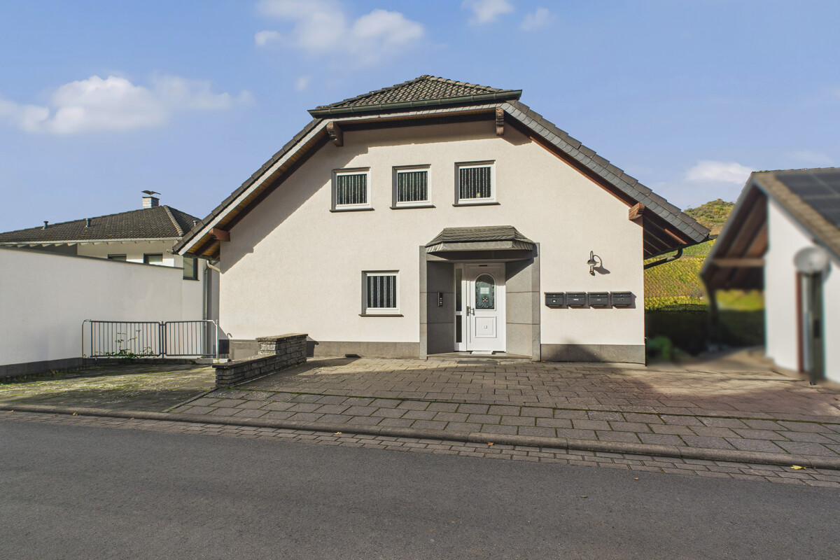 Zum Verkauf steht ein großzügiges Mehrfamilienhaus, das mit einem traumhaften Blick auf die Mosel und die umliegenden Weinberge überzeugt. Die Lage ist ruhig und Hochwasserfrei.