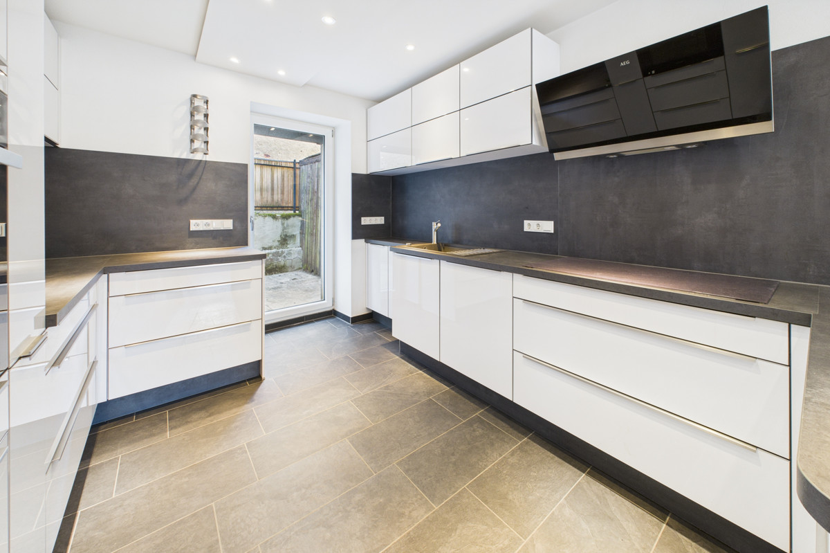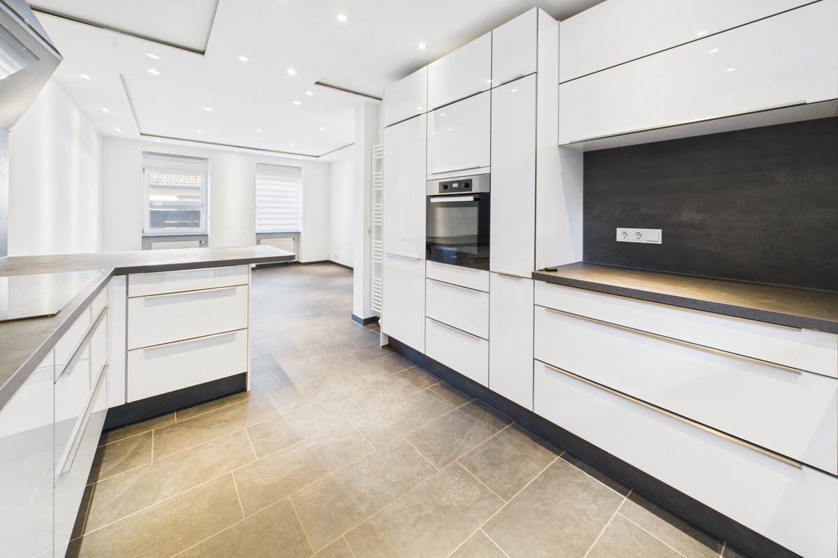 Im Erdgeschoss empfängt Sie ein offener Wohn- und Essbereich mit integrierter, hochwertiger Einbauküche – ideal für gesellige Abende oder den Alltag mit der Familie. Das angrenzende Wohnzimmer lädt zum Entspannen ein. Ein modernes Badezimmer mit Dusche und Badewanne rundet das Raumangebot auf dieser Ebene ab. Die integrierte Garage mit direktem Zugang zur praktischen Werkstatt schafft zusätzlichen Stauraum und Platz für Hobbys oder handwerkliche Arbeiten.
