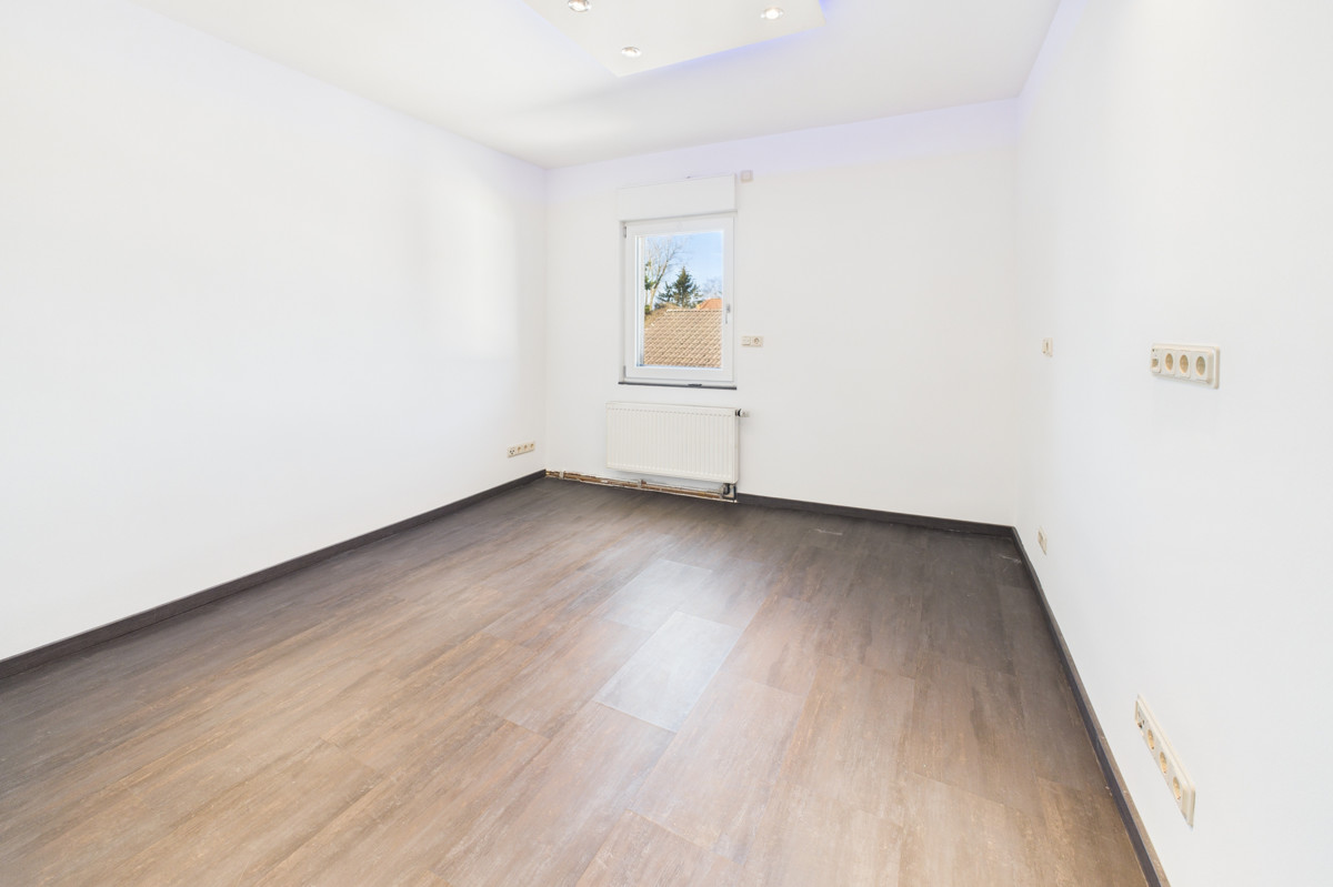 Ein weiteres Zimmer eignet sich perfekt als Büro oder Gästezimmer. Auch auf dieser Etage steht ein Badezimmer mit Dusche zur Verfügung. Besonders hervorzuheben ist die Dachterrasse, von der aus Sie direkt in den Garten gelangen.