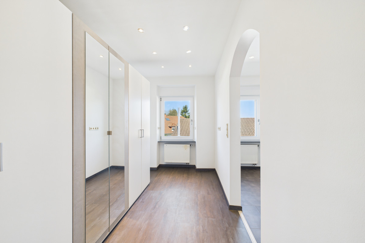 Im Obergeschoss befinden sich zwei Schlafzimmer, eines davon mit Ankleide.