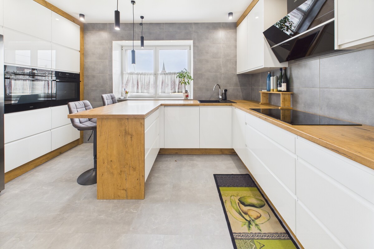 Im Erdgeschoss erwartet Sie eine moderne Küche mit angrenzendem Essbereich, welcher genügend Raum für gemeinsame Mahlzeiten schafft.