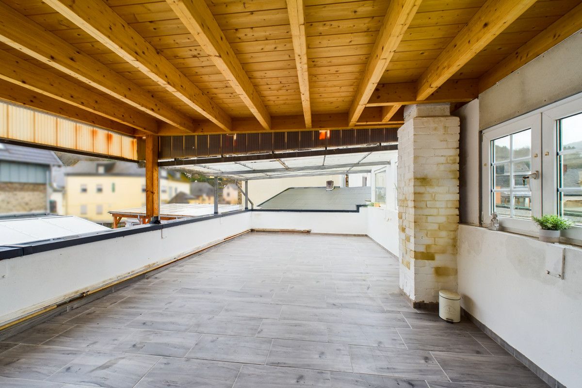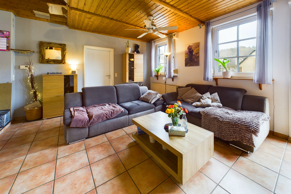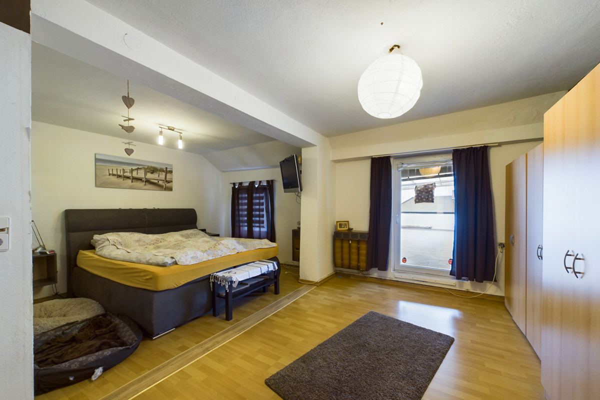 Das Dachgeschoss präsentiert einem offenen Wohn- und Essbereich, der perfekt für Familientreffen oder gesellige Abende mit Freunden geeignet ist. Der verbaute Holzofen verleiht dieser Etage eine besonders gemütliche Atmosphäre. Die angrenzende moderne Küche mit Abstellraum lässt keine Wünsche offen. Von der Terrasse aus haben Sie einen herrlichen Blick auf die Umgebung und können die Sonne in vollen Zügen genießen.