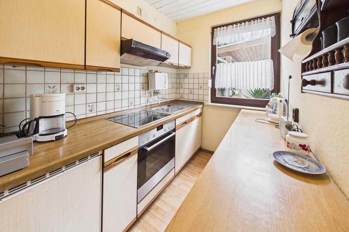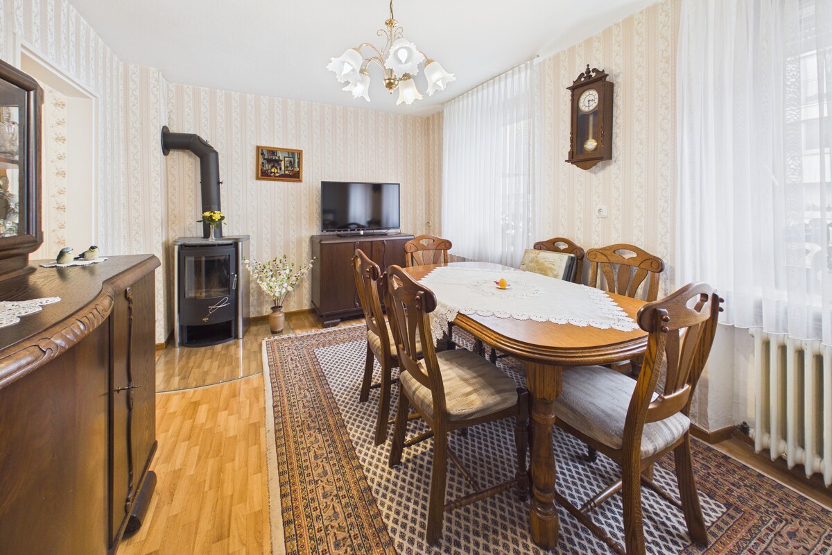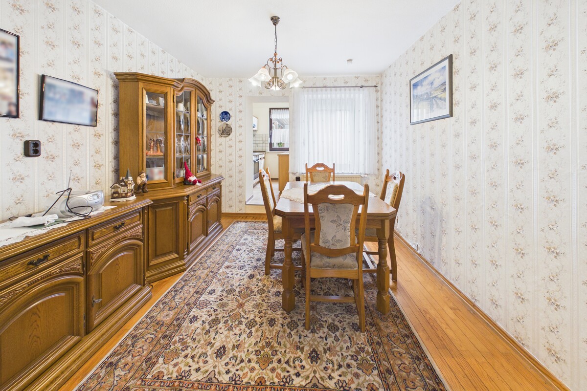 Im Erdgeschoss befinden sich ein großzügiges Wohnzimmer sowie ein separates Esszimmer mit angrenzender Küche. Zusätzlich stehen ein vielseitig nutzbarer Allzweckraum und ein Badezimmer mit Dusche zur Verfügung.