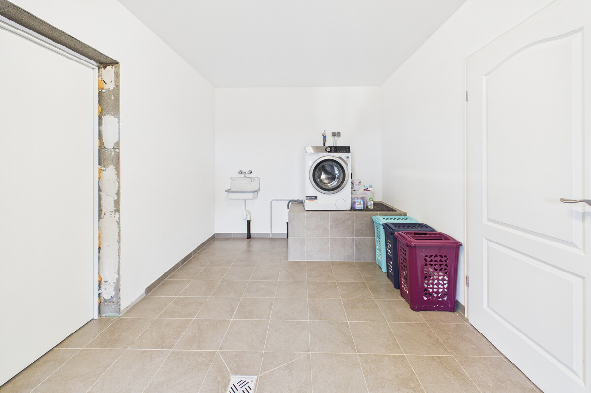 Aufgrund der Hanglage verfügt das Haus über ein Untergeschoss, das durch Helligkeit und große Fensterflächen überzeugt. Zwei große Räume eröffnen vielfältige Nutzungsmöglichkeiten, etwa als zusätzliche Wohnräume, Schlafzimmer, Büro oder Hobbybereich. Von diesen Räumen aus besteht ein direkter Zugang zum Garten. Ergänzt wird das Untergeschoss durch zwei Kellerräume, einen Heizungsraum sowie einen Hauswirtschaftsraum.