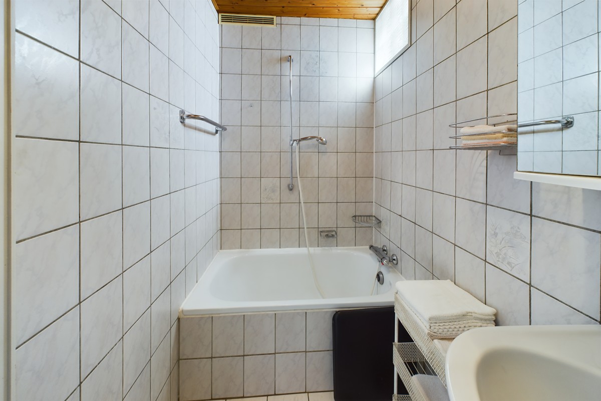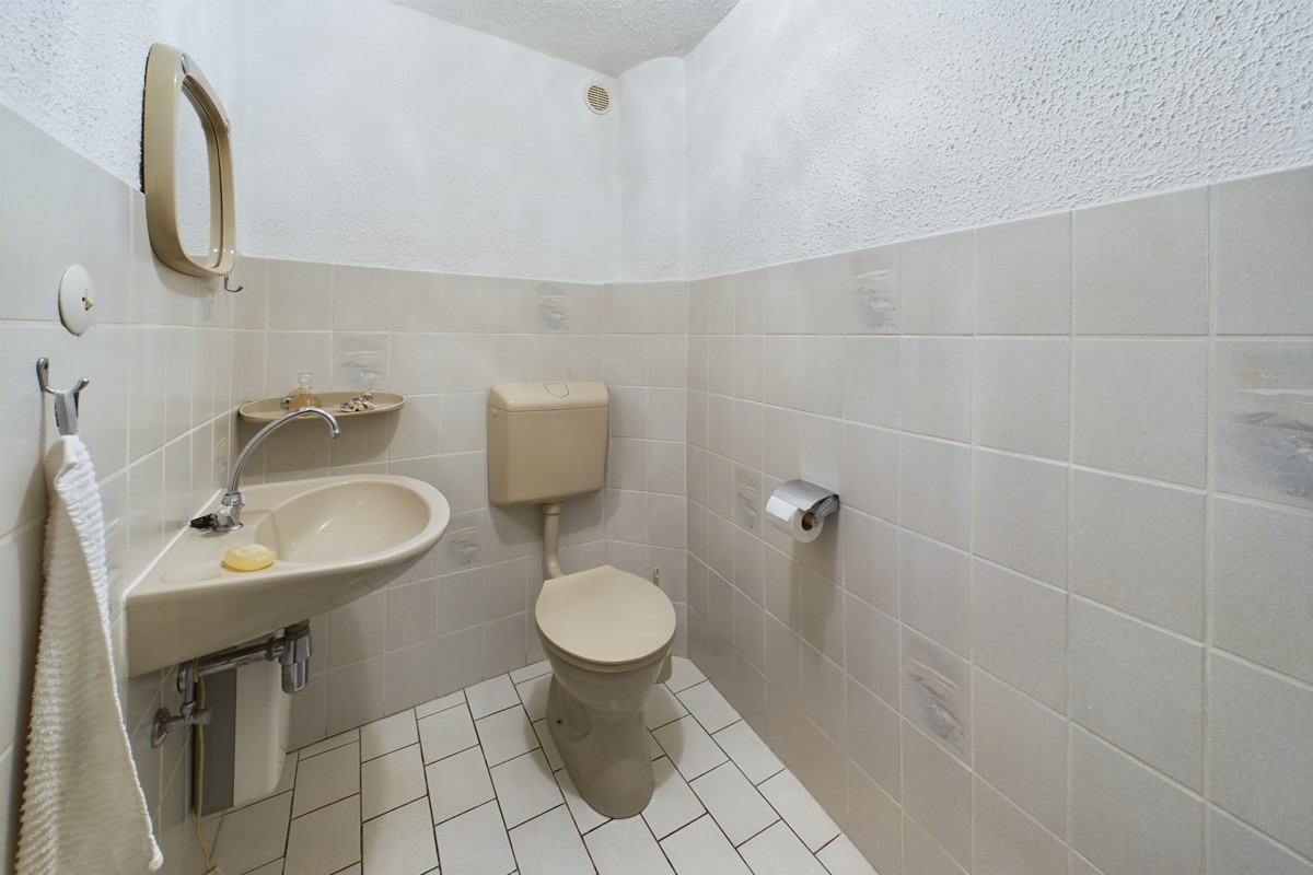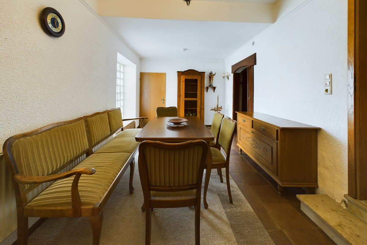 Das Erdgeschoss besticht durch seine Funktionalität und Großzügigkeit. Hier finden Sie eine geräumige Küche mit angrenzendem Essbereich, ideal für gesellige Zusammenkünfte. Ein WC bietet zusätzlichen Komfort für Bewohner und Gäste. Die Garage schafft Platz für Fahrzeuge und Stauraum, während der Heizungsraum und die Werkstatt praktische Räume für den Alltag darstellen. Das Highlight des Erdgeschosses ist zweifellos das großzügige Wohnzimmer, welches zum Verweilen einlädt.