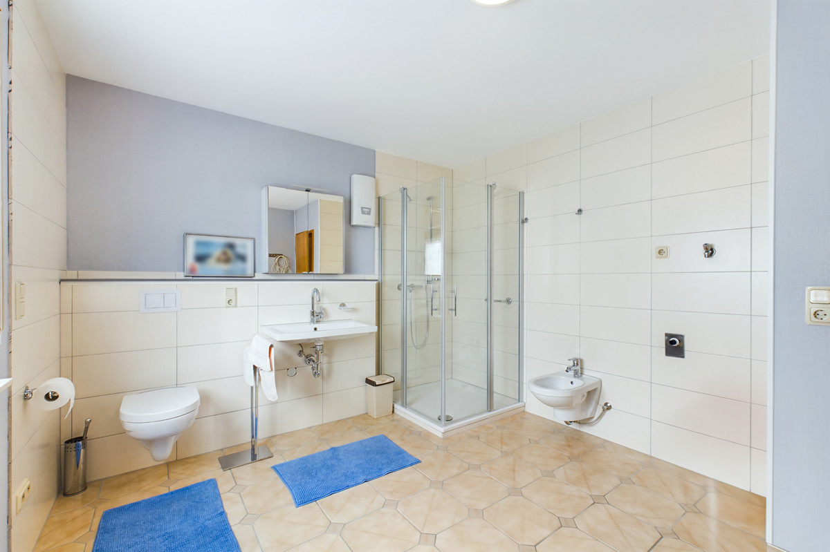 Ein weiteres Badezimmer rundet diese Etage ab.