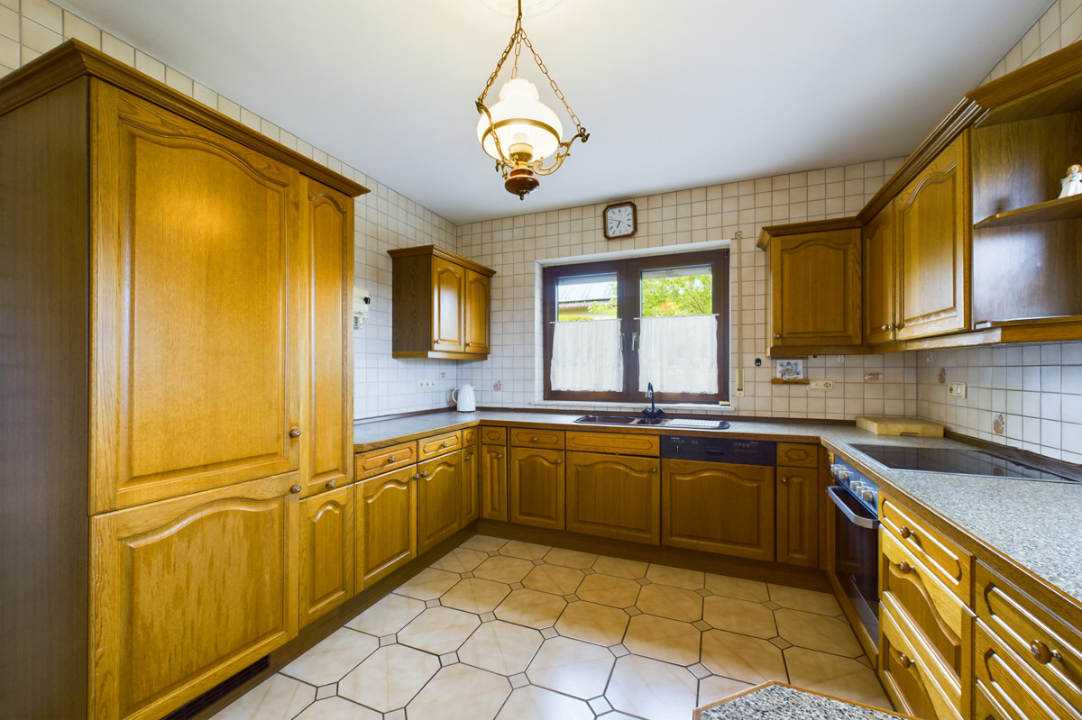 Das Haus beeindruckt durch seine durchdachte Raumaufteilung, große Fenster, die für viel Tageslicht sorgen, und zahlreiche praktische Details, die den Wohnkomfort erhöhen. Im Erdgeschoss lädt die Küche mit dem offenen Essbereich zum Kochen und Verweilen ein. Der angrenzende Wohnbereich mit Zugang zum Balkon schafft eine gemütliche Atmosphäre für gemeinsame Stunden mit Familie und Freunden. Ein Gäste-WC und eine Abstellkammer sorgen für zusätzlichen Komfort.