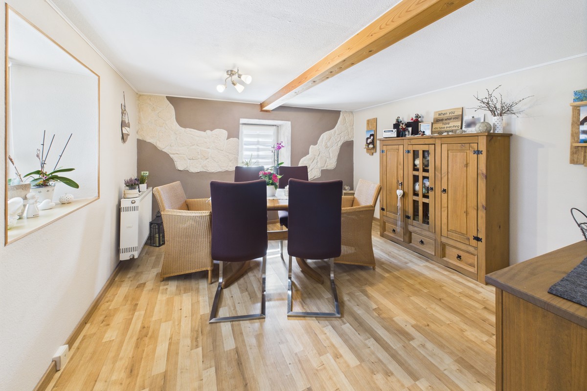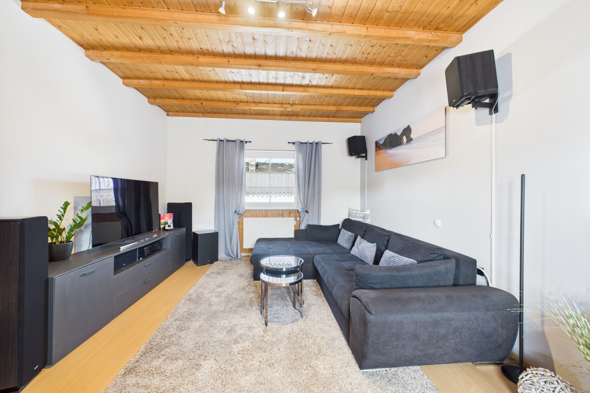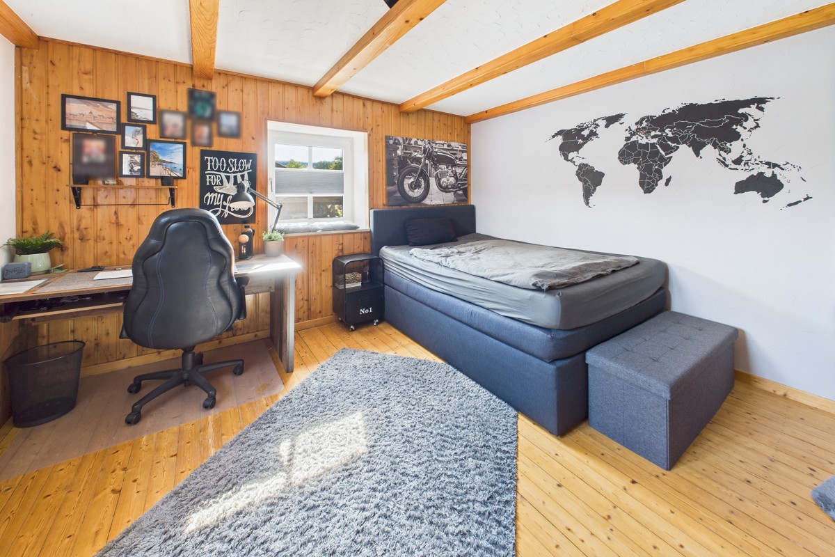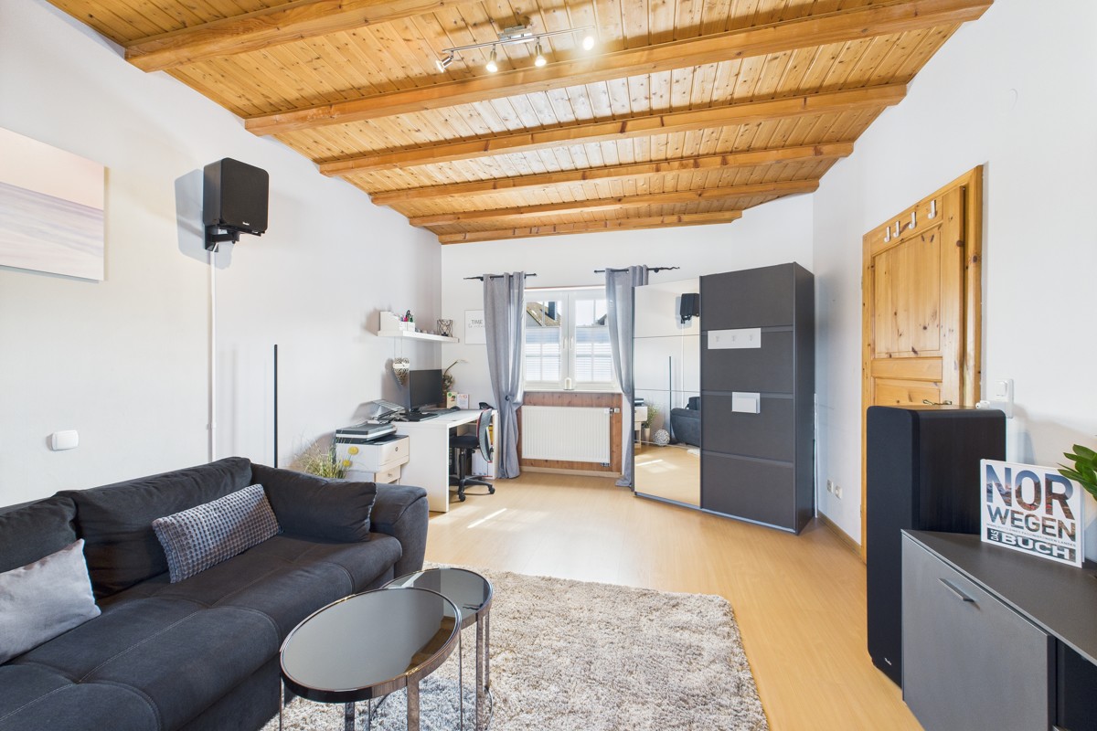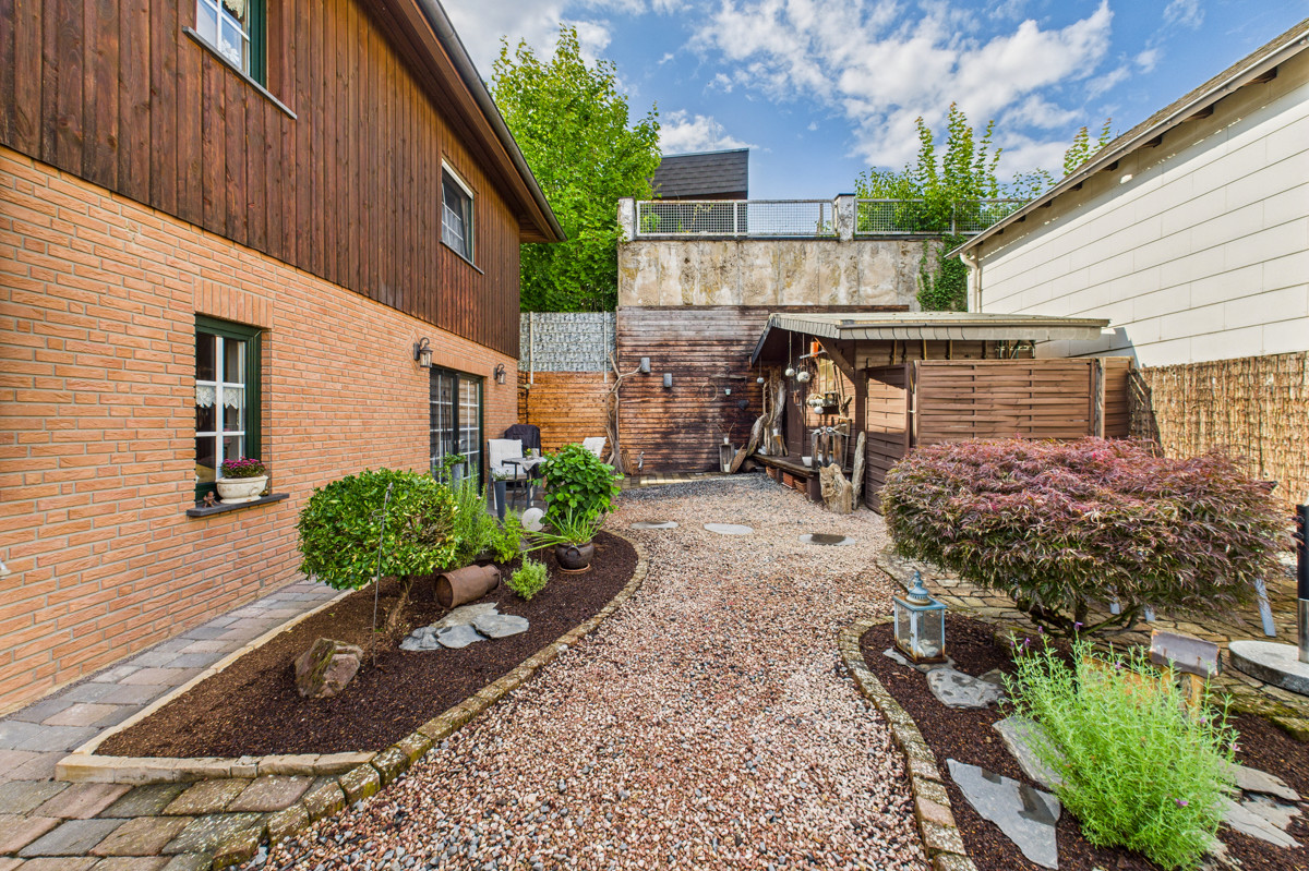 Das Dachgeschoss umfasst zwei weitere Wohnbereiche, die flexibel als Hobbyraum, Arbeitszimmer oder zusätzliche Schlafzimmer genutzt werden können. Hinter dem Haus befindet sich ein gepflegter Hof, ergänzt durch ein kleines Gartenhaus – ideal als Werkstatt oder zur praktischen Aufbewahrung von Gartengeräten.