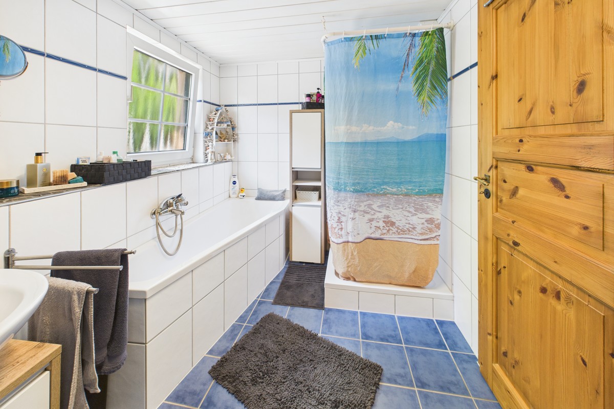 Im Obergeschoss stehen drei gut geschnittene Schlafzimmer sowie ein Badezimmer mit Badewanne und Dusche zur Verfügung. Ein Balkon sorgt für zusätzlichen Freiraum und einen schönen Ausblick.