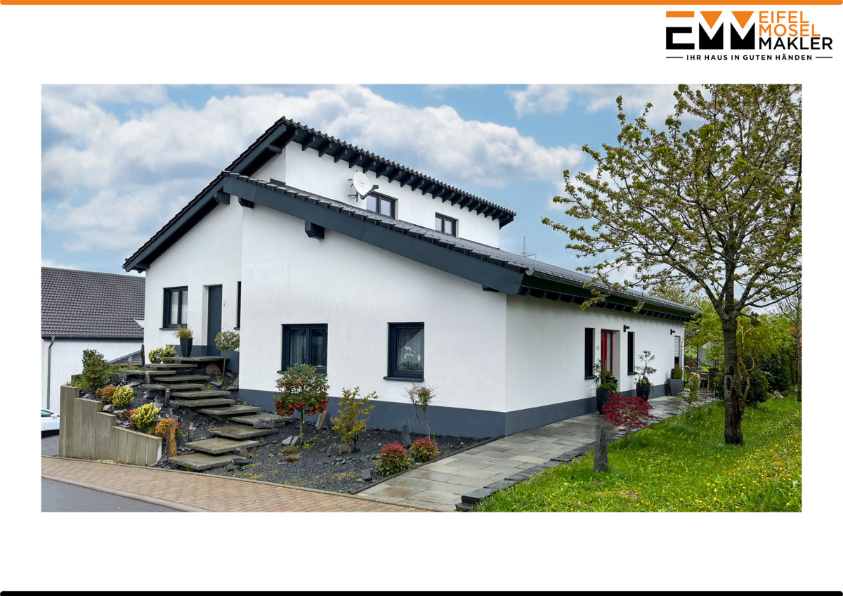 Zum Verkauf steht ein neuwertiges Zweifamilienhaus in Osburg, Baujahr 2019. Das Haus verfügt über insgesamt ca. 183 m² Wohnfläche und ca. 116 m² Nutzfläche. Die Immobilie kann entweder als zwei getrennte Wohneinheiten genutzt werden oder es kann mit minimalem Aufwand eine große Wohneinheit geschaffen werden. Beide Wohnungen verfügen über einen separaten Eingang.