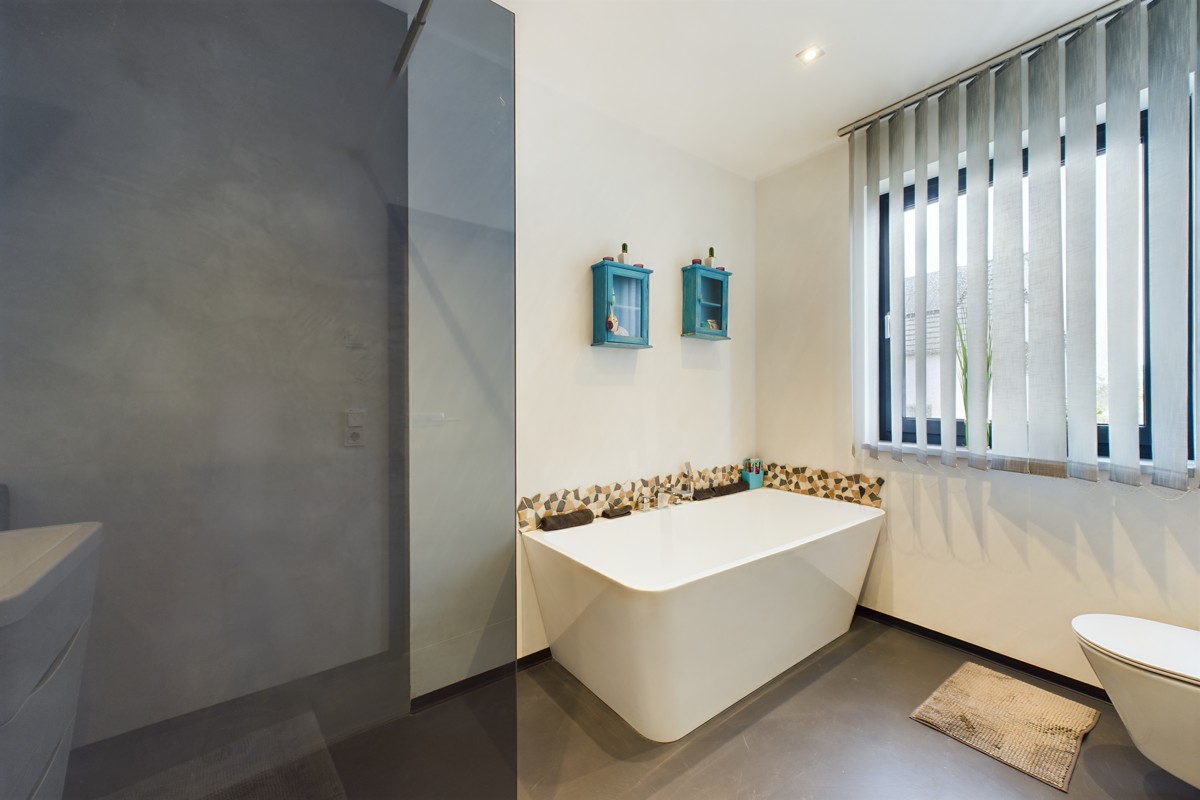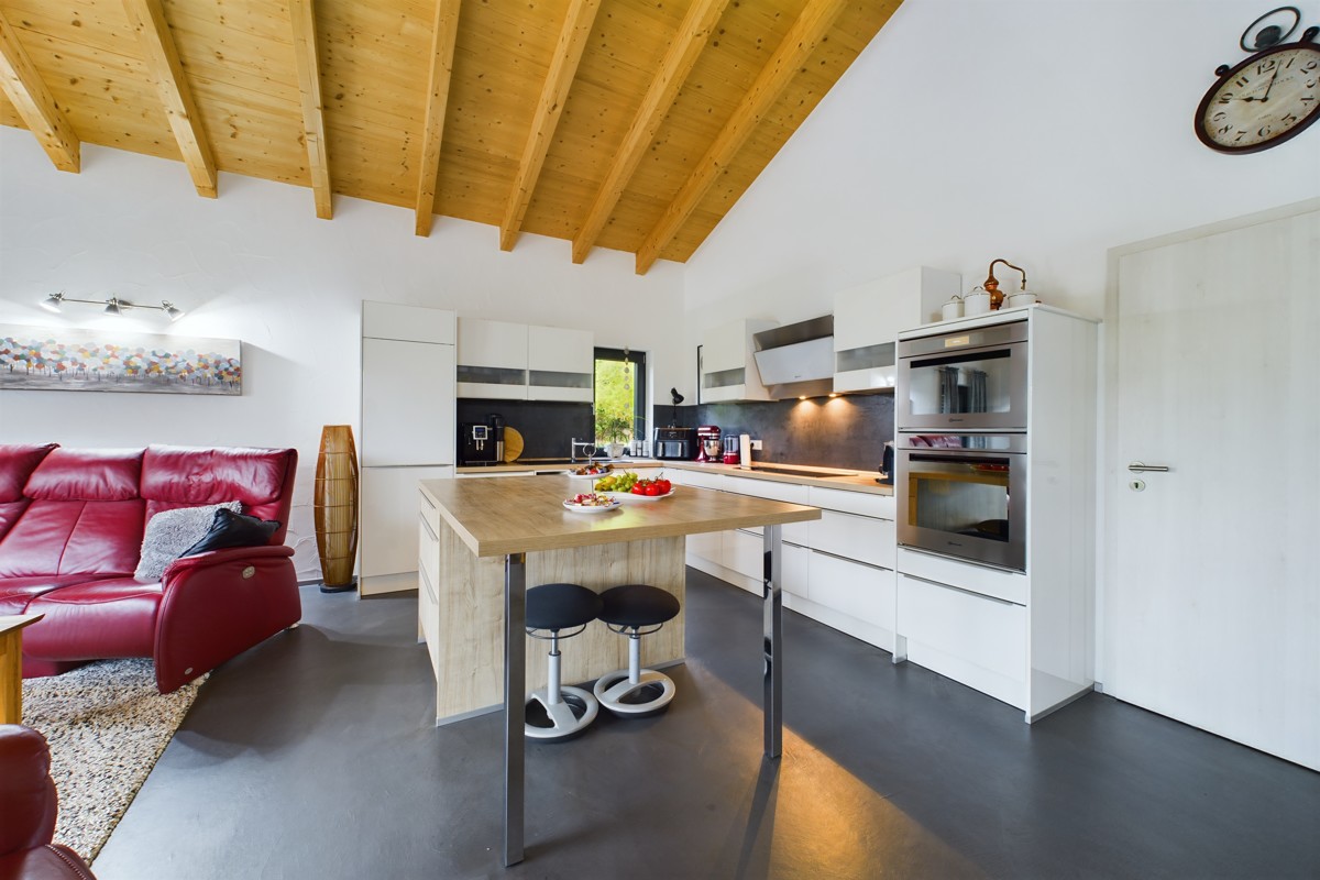 In der Haushälfte B erwartet Sie ebenfalls ein offener Wohn- und Essbereich im Erdgeschoss, der durch helle und einladende Räumlichkeiten eine warme Atmosphäre schafft. Eine geräumige Terrasse mit direktem Zugang zum Garten lädt zum Verweilen im Freien ein und bietet eine malerische Aussicht. Ein Schlafzimmer und ein Badezimmer mit Dusche und Badewanne sorgen für den nötigen Rückzugsort und Komfort, während ein praktischer Abstellraum die Nutzung des Wohnraums optimiert. Im Dachgeschoss befindet sich ein zusätzlicher Speicher, der bei Bedarf als weiterer Wohnraum ausgebaut werden kann. Die durchdachte Raumaufteilung und hochwertige Ausstattung machen diese Haushälfte zu einem komfortablen und gemütlichen Zuhause.