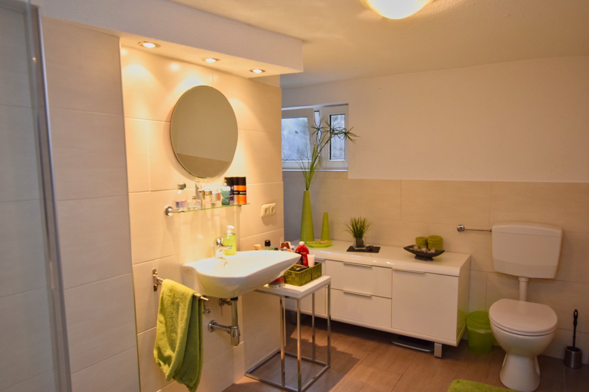 Die untere Wohnung wurde ebenfalls in den letzten Jahren kernsaniert und bietet mit einem Schlafzimmer, einem Badezimmer, 2 Abstellräumen und einem Wohnzimmer mit offener Küche alles was man benötigt. Diese Wohnung ist derzeit vermietet.