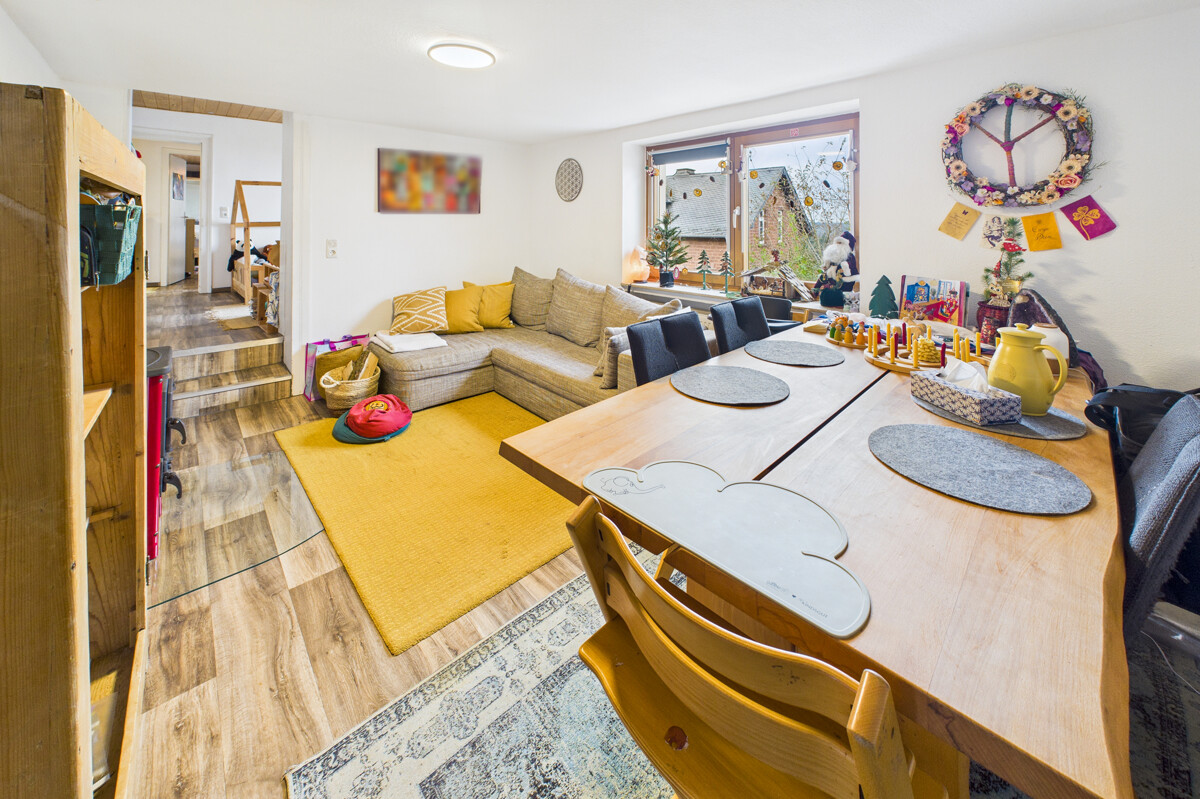 Die Wohnung im Obergeschoss ist derzeit vermietet – das bestehende Mietverhältnis endet zum 01.03.2026.