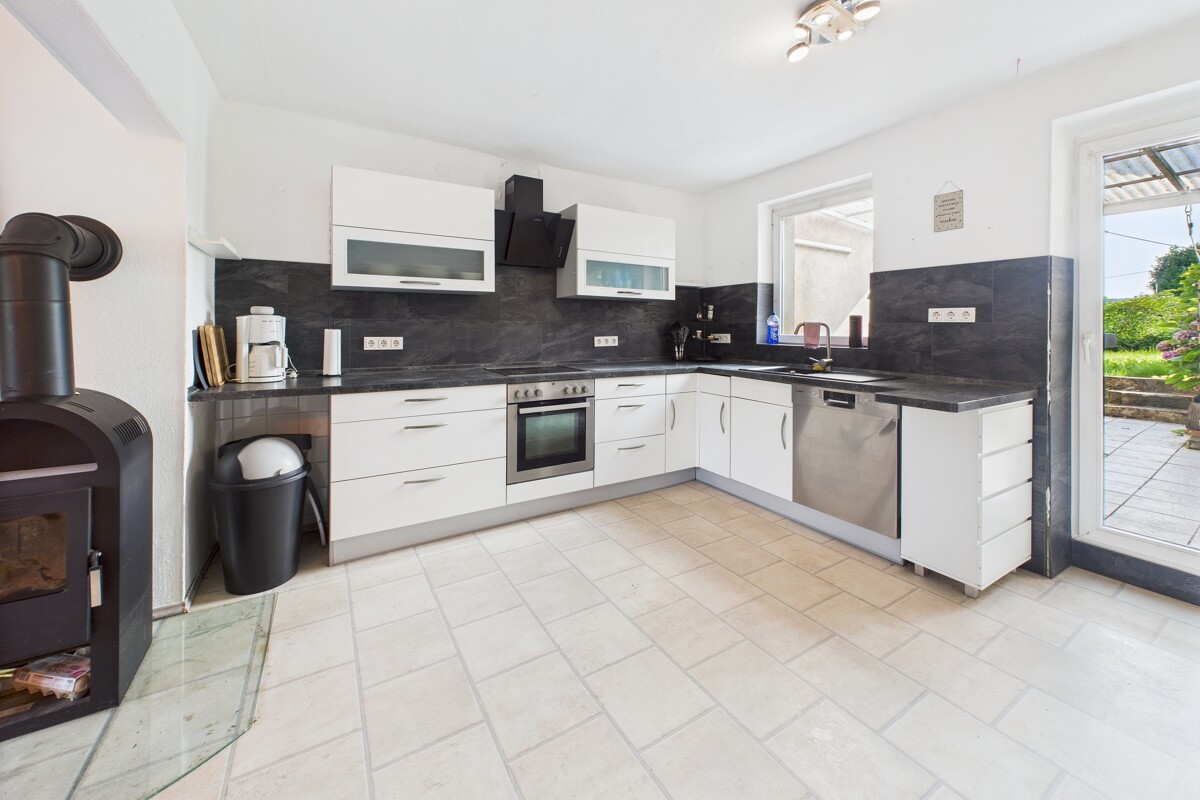 Im Erdgeschoss erwarten Sie ein Wohnzimmer, ein Esszimmer, eine Küche, ein Büro sowie ein Gäste-WC. Vom Erdgeschoss aus gelangen Sie direkt auf die Terrasse mit herrlichem Blick auf die Weinberge, die zum Verweilen einlädt.