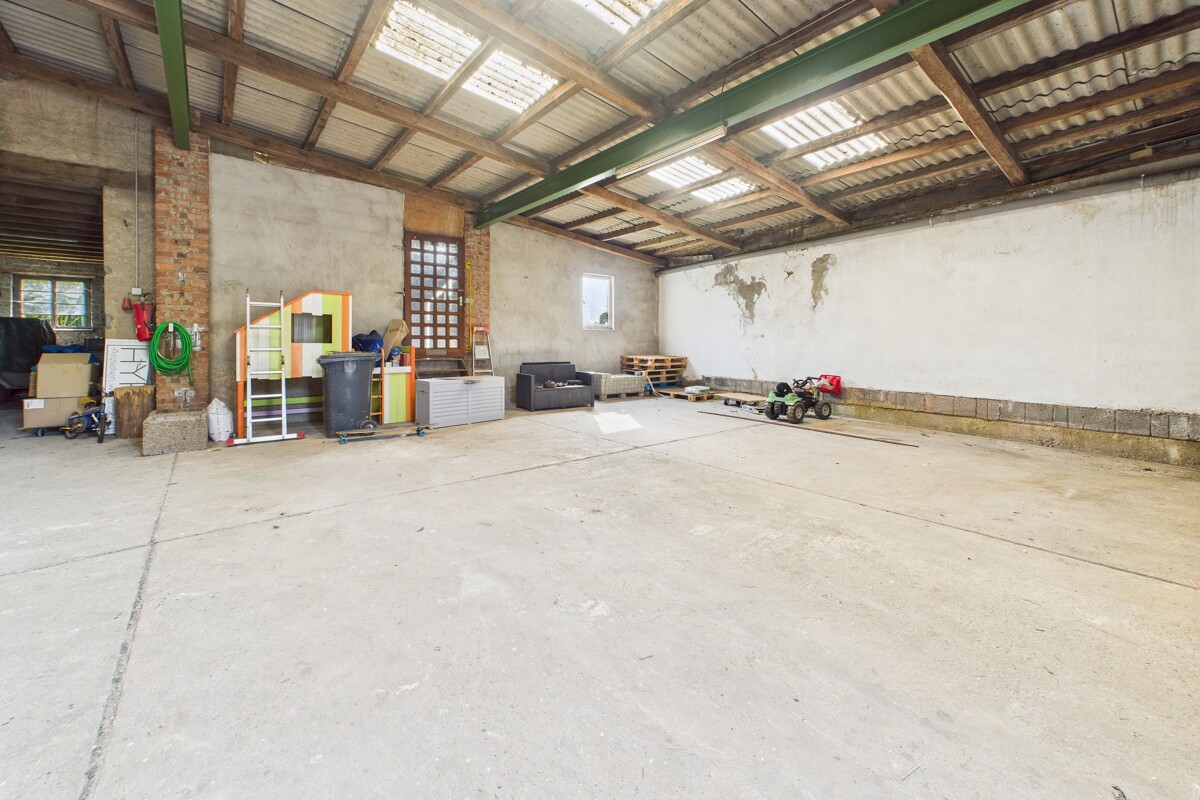 Das Highlight dieser Immobilie ist die großzügige Halle mit gleich drei Toren (jeweils ca. 3 m Höhe). Hier finden Wohnmobile, Autos, Traktoren oder andere Fahrzeuge bequem Platz. Die Halle lässt sich sowohl privat nutzen als auch attraktiv vermieten.